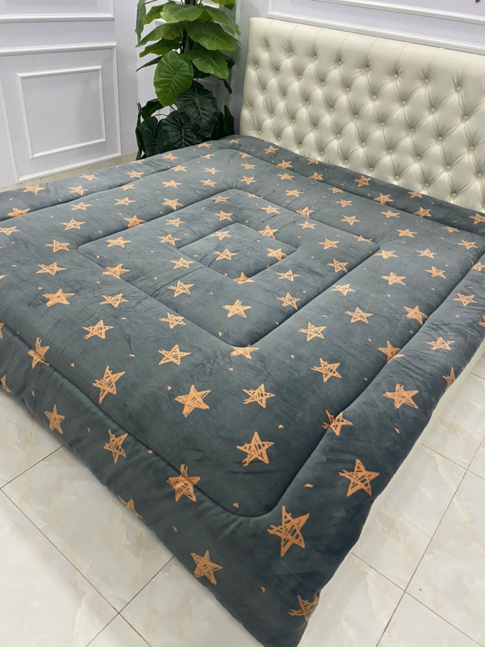 Màu sắc trang nhã , phù hợp với mọi phòng ngủ Chất liệu vải tencel : Vải mềm , mịn , mát , thấm hút mồ hôi tốt chăn bốn mùa kích thước 200*220 rộng