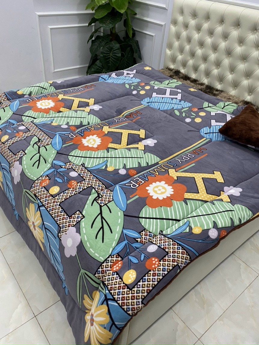 Thông Tin Sản Phẩm: Tên sản phẩm: Chăn chần Thun Lạnh in Họa Tiết Chất liệu vải: 95% Polyester & 5% Spandex Bao bì: Túi PVC quai xách Kích thước sản phẩm: 180cm x 200cm