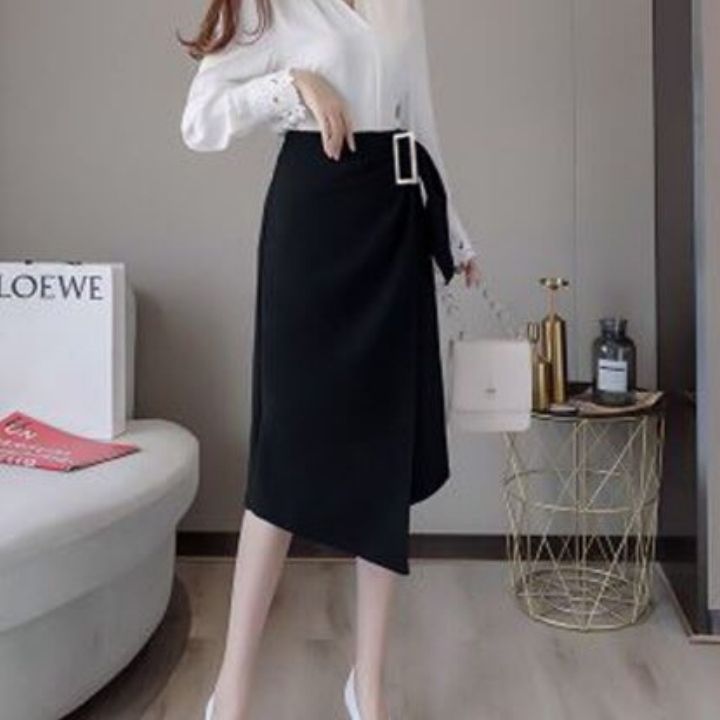 SẢN PHẨM: Chân váy công sở tà chéo phối khoen thon gọn vòng bụng - dài qua gối, nhiều size và màu, form dáng chuẩn thích hợp mặc đi làm, đi tiệc