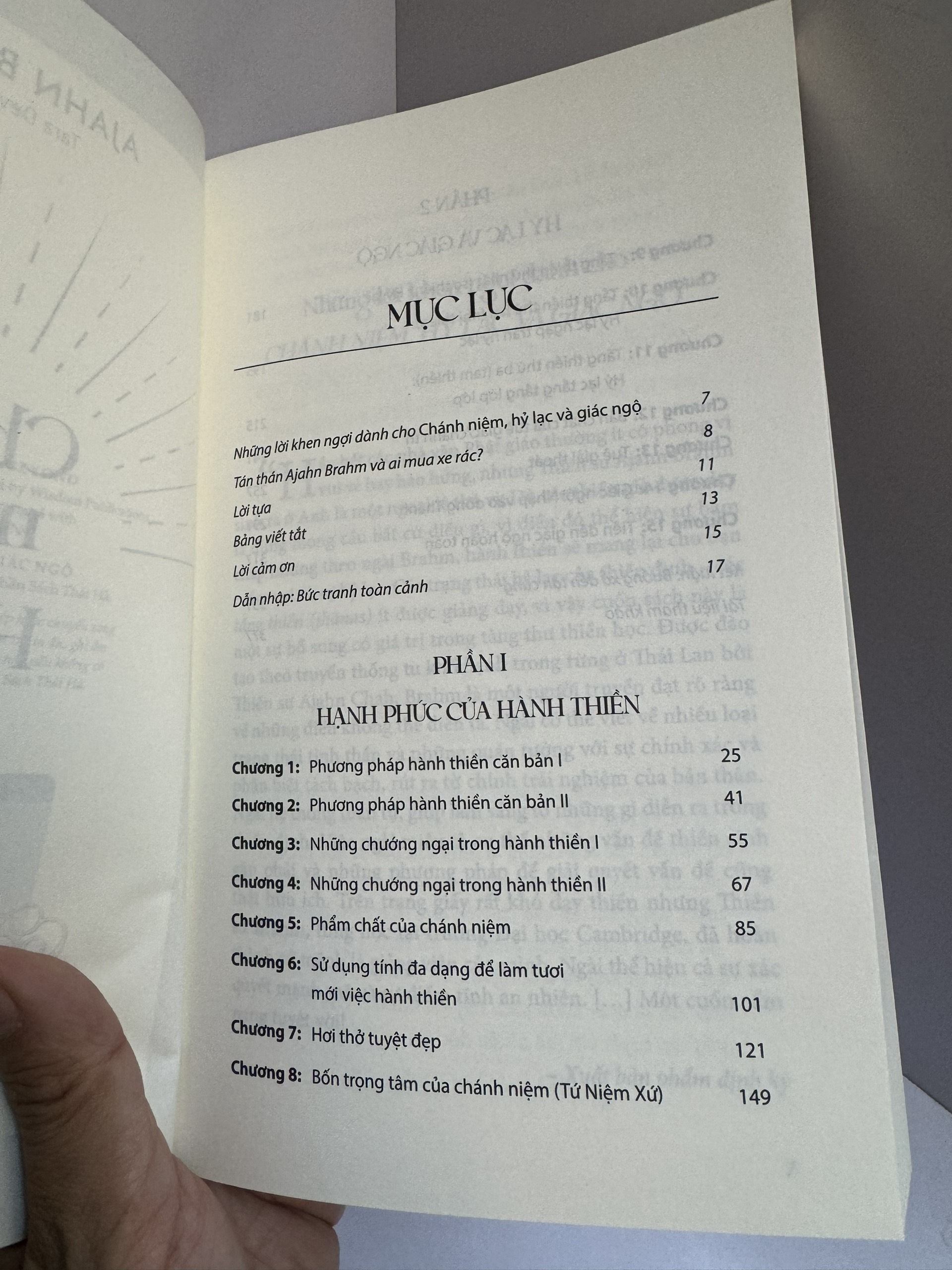 Trong Chánh niệm, Hỷ lạc và Giác ngộ, bạn sẽ tìm thấy một bộ giáo lý kỹ lưỡng tường tận giúp phát triển và đào sâu việc hành thiền, đặc biệt nhằm mục đích nhập định, hay jhāna samādhi, và mở ra những tuệ giác theo sau. Thiền sư Ajahn Brahm mang đến cho chúng ta một sự hiểu biết kỹ lưỡng và tinh tế về cách chuyển hóa những khó khăn ban đầu và hướng tâm tới trạng thái sướng mê ly, hạnh phúc, khinh an và ổn định sâu của định (jhāna). Sau đó, Thầy chuyển sự chú ý tập trung này để soi sáng tính vô ngã, mang lại sự hiểu biết giải thoát.