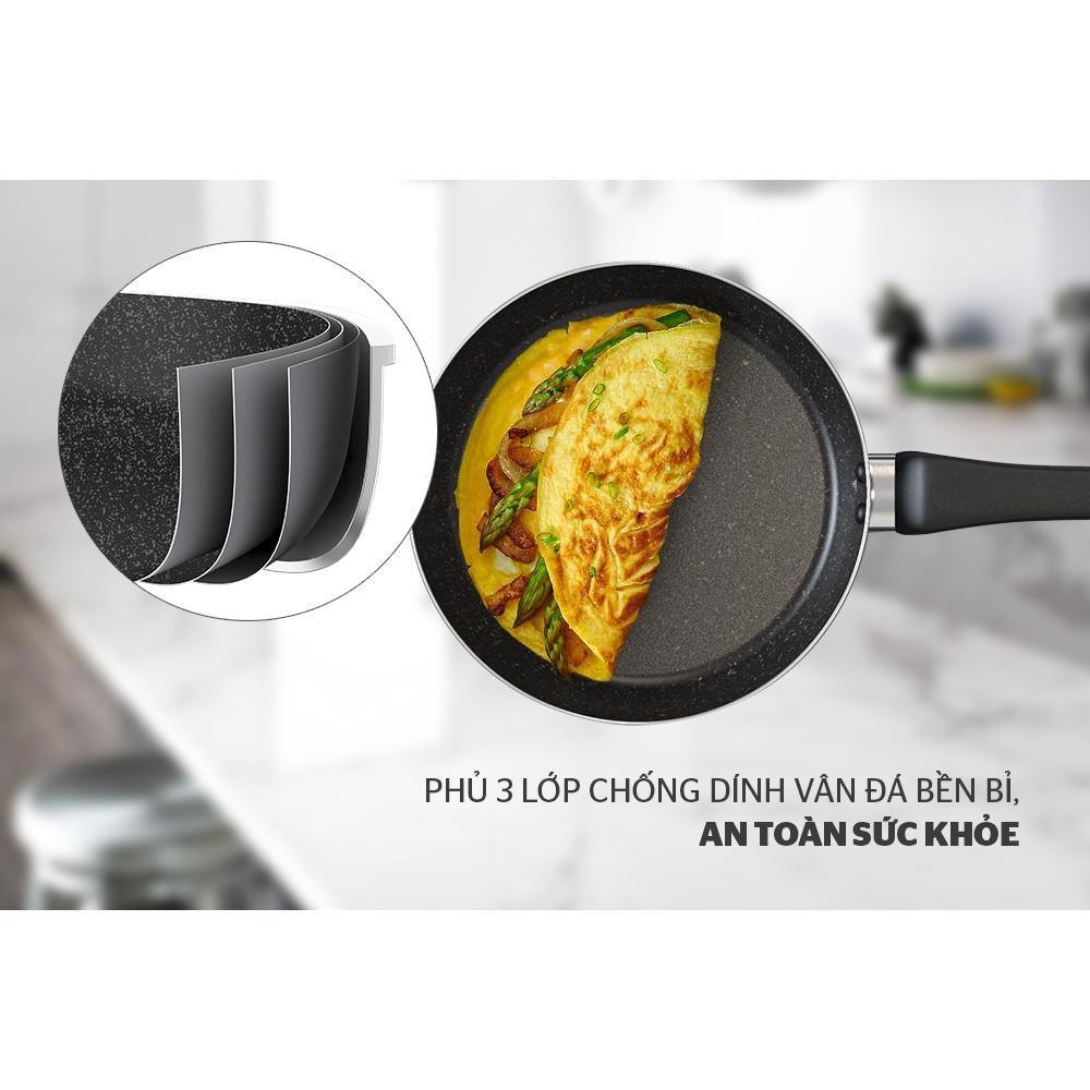 ĐẶC ĐIỂM NỔI BẬT: Chống dính vân đá an toàn cho sức khỏe Chất liệu nhôm tấm có độ dày 2.1 mm Truyền nhiệt nhanh, tiết kiệm nhiên liệu Bên ngoài được sơn màu chịu nhiệt Tay cầ...