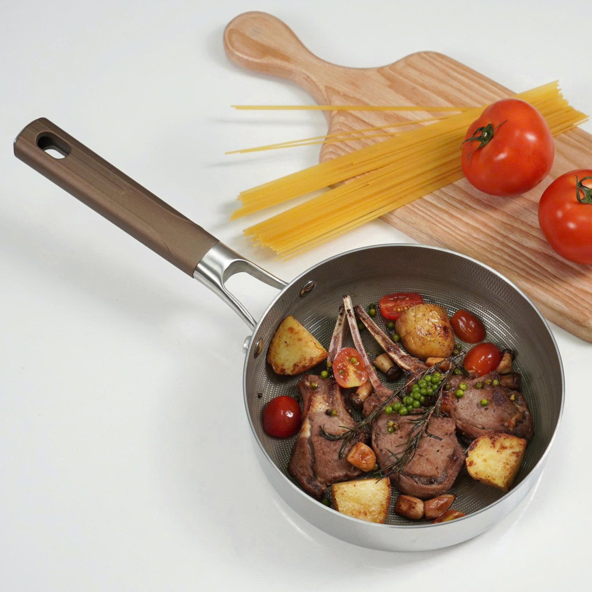 • Chảo tổ ong chống dính dạng tay cầm đáy liền 3 lớp Inox Sus304 vân chống trượt • Công nghệ Honey Comb - dạng tổ ong chống dính và chống quá nhiệt an toàn