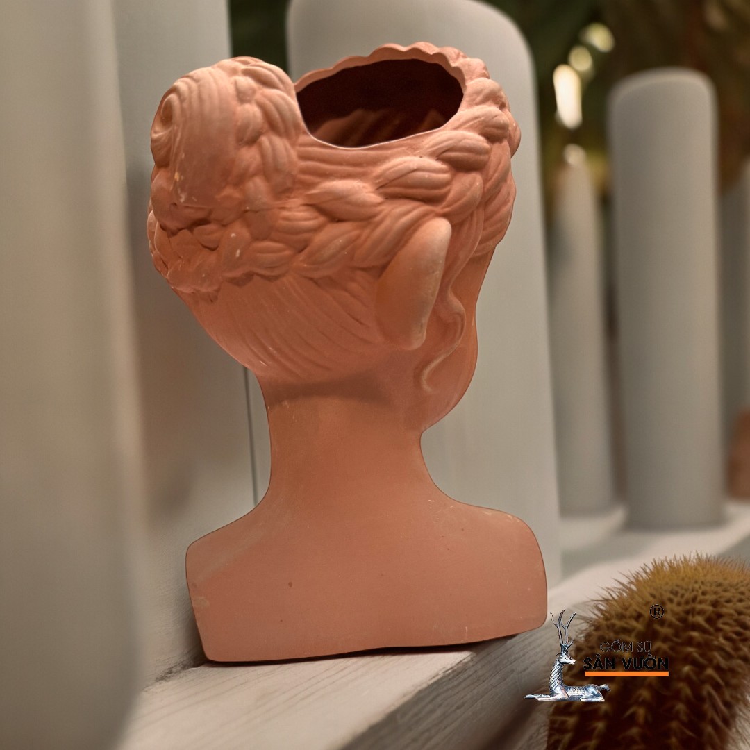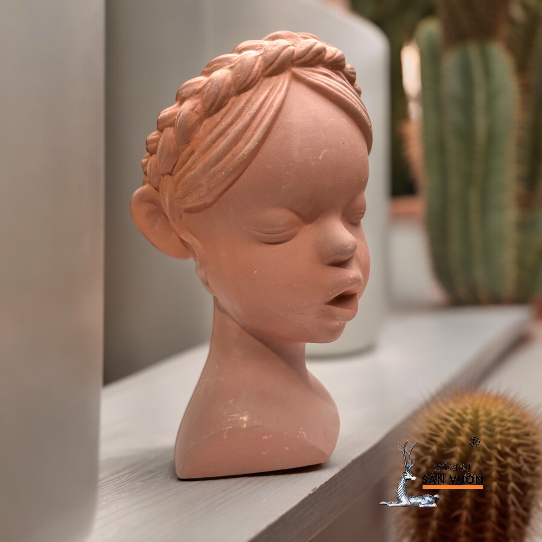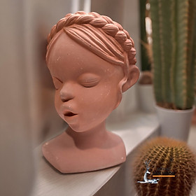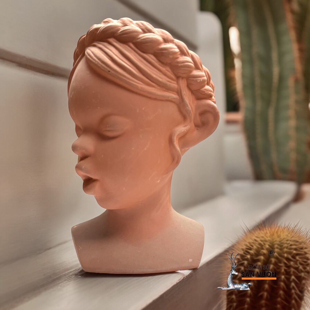 ✨Chậu Gốm Đất Nung Hình Cô Gái Tóc Bím - Chậu Decor Sân Vườn