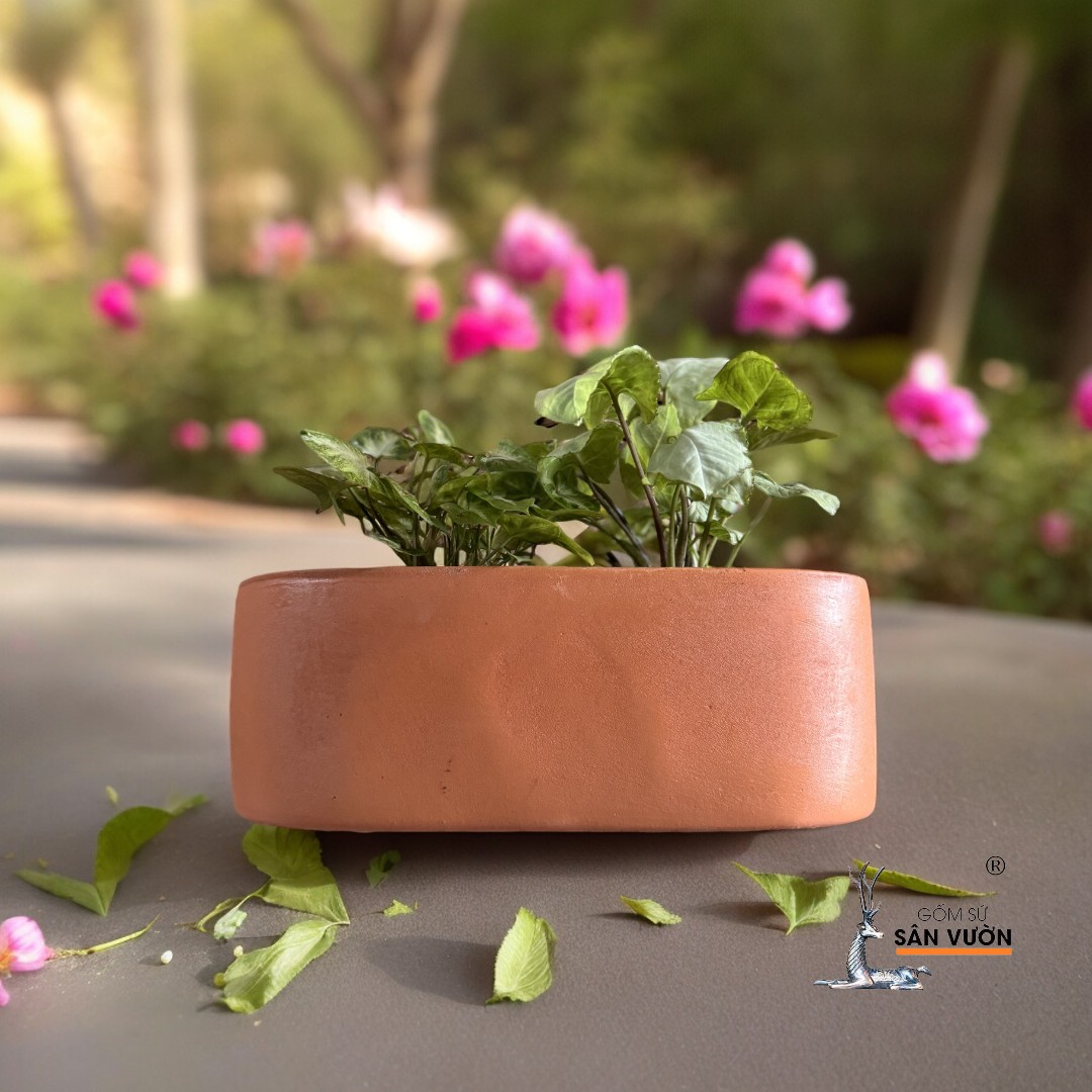 Chậu chữ nhật mini đất nung gốm Bát Tràng