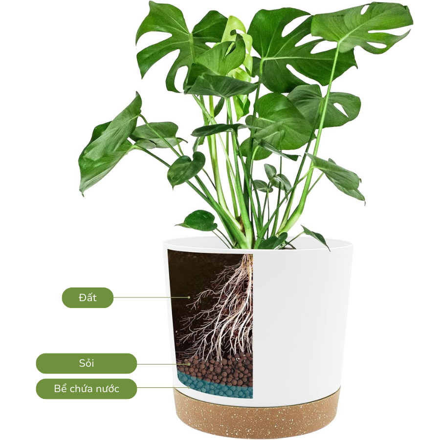 DOCNEEM XIN GIỚI THIỆU ĐẾN BẠN MÃ SẢN PHẨM - CHẬU TRỒNG CÂY TỰ TƯỚI ĐỂ BÀN THÔNG MINH KIỂU DÁNG TRÒN MONROVIA I0 _ Chất liệu: PP cao cấp _ Cấu tạo: Chậu bao