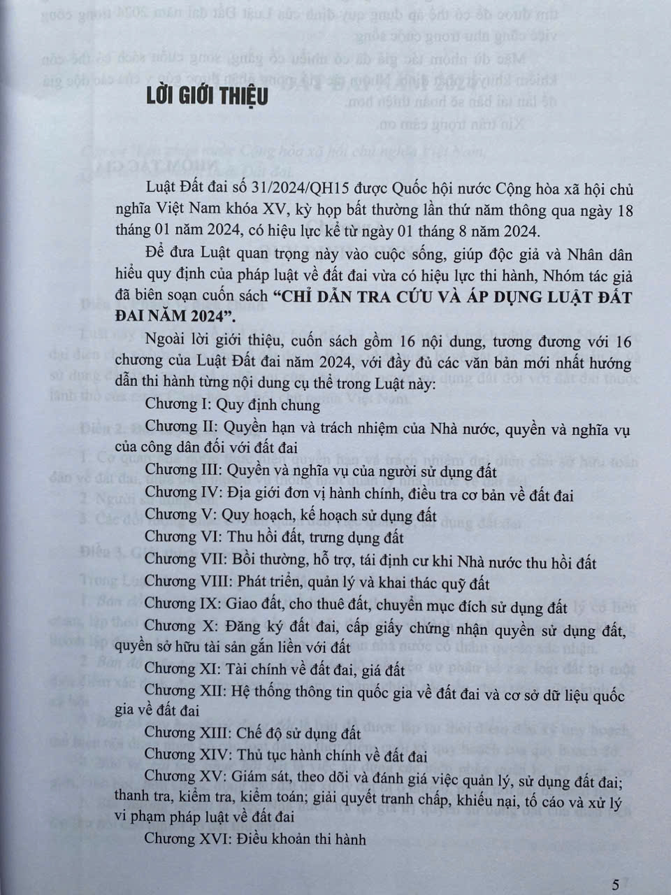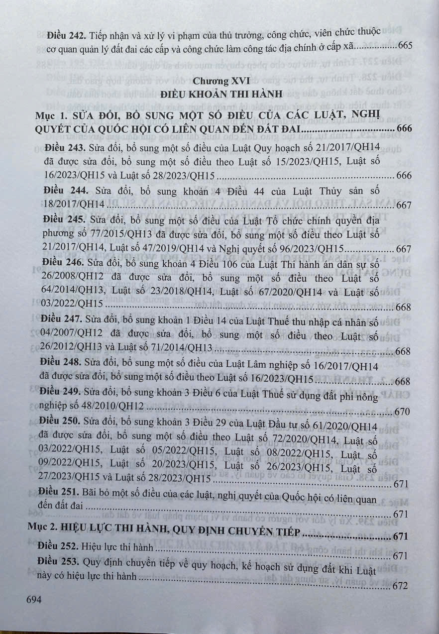 Mua tại TiktokLuật Đất đai số 31/2024/QH15 được Quốc hội nước Cộng hòa xã hội chủ nghĩa Việt Nam khóa XV, kỳ họp bất thường lần thứ năm thông qua ngày 18 tháng 01 năm 2024, có hiệu lực kể từ ngày 01 tháng 8 năm 2024. Để đưa Luật quan trọng này vào cuộc sống, giúp độc giả và Nhân dân hiểu quy định của pháp luật về đất đai vừa có hiệu lực thi hành, Nhóm tác giả đã biên soạn cuốn sách "CHỈ DẪN TRA CỨU VÀ ÁP DỤNG LUẬT ĐẤT ĐAI NĂM 2024". Cuốn sách gồm 16 nội dung, tương đương với 16 chương của Luật Đất đai năm 2024, với đầy đủ các văn bản mới nhất hướng dẫn thi hành từng nội dung cụ thể trong Luật này: