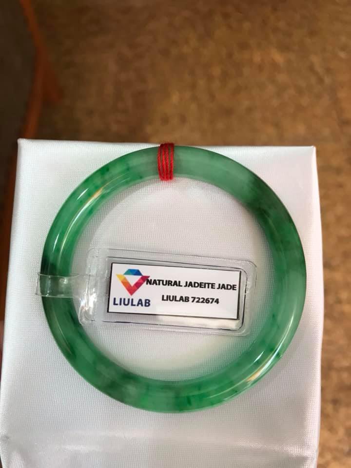 ✨CHIẾC VÒNG NỮ LÝ VÂN A SỊN 49MM KÈM GIẤY KIỂM ĐỊNH LIULAB No 722674 CHẤT LIỆU 100% ĐÁ CẨM THẠCH THIÊN NHIÊN MÀU XANH LÝ VÂN TƯƠI ĐẸP NỮ 45KG-51KG ĐEO SANG TAY Ạ