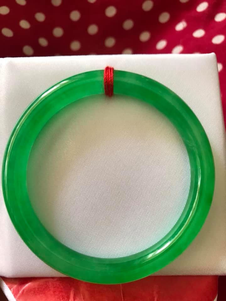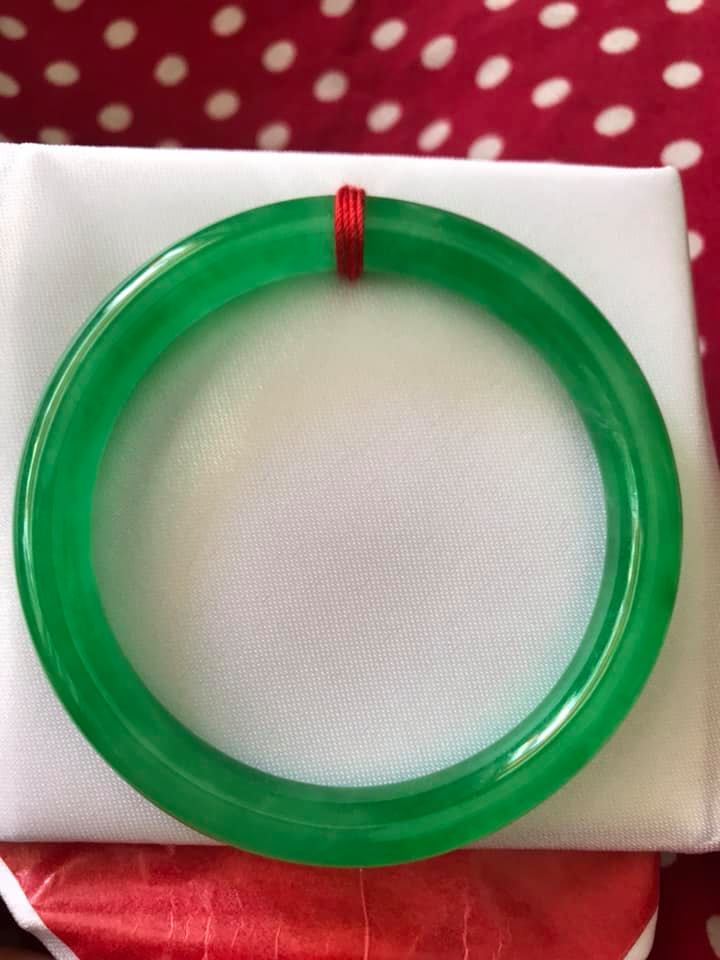 Vòng cẩm thạch Đậu Lý AI CN 53mm Ni 53mm x cọng 7mm Màu xanh Ngọc Đậm đều bóng đẹp xinh xắn Hợp Nữ mệnh Mộc mệnh Hỏa mệnh Thủy 52kg-56kg đeo đẹp ạ Sản