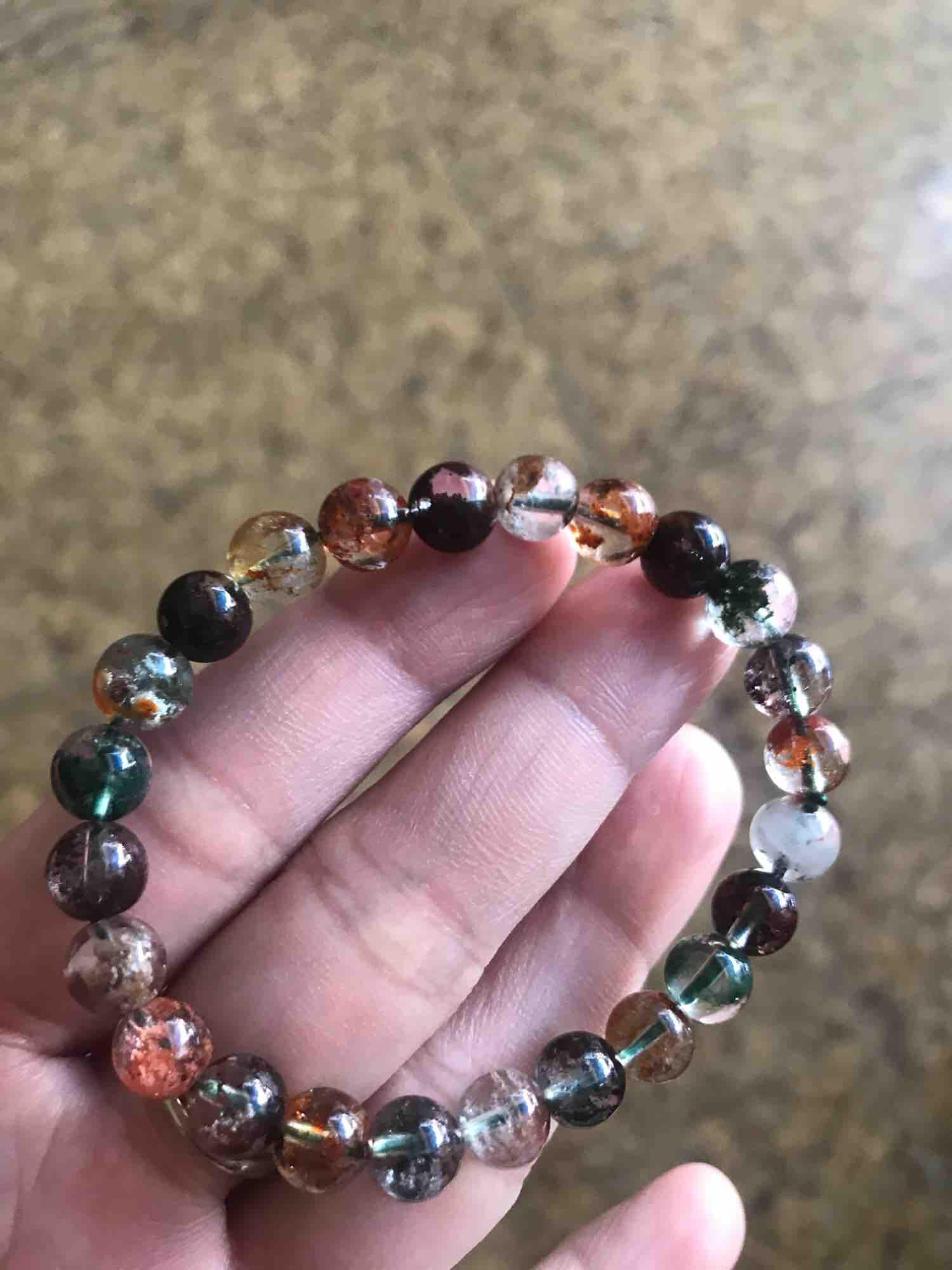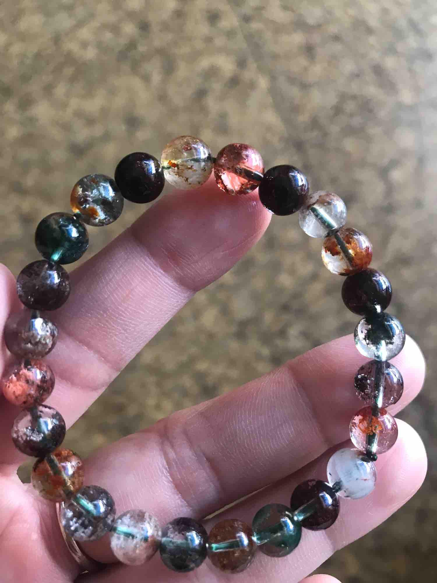 Vòng tay phong thuỷ may mắn đá Thạch anh Ưu linh đa sắc Size hạt 8mm màu Ưu linh đẹp sang trọng của đá thạch anh tự nhiên đa sắc Công dụng giúp xoá đi