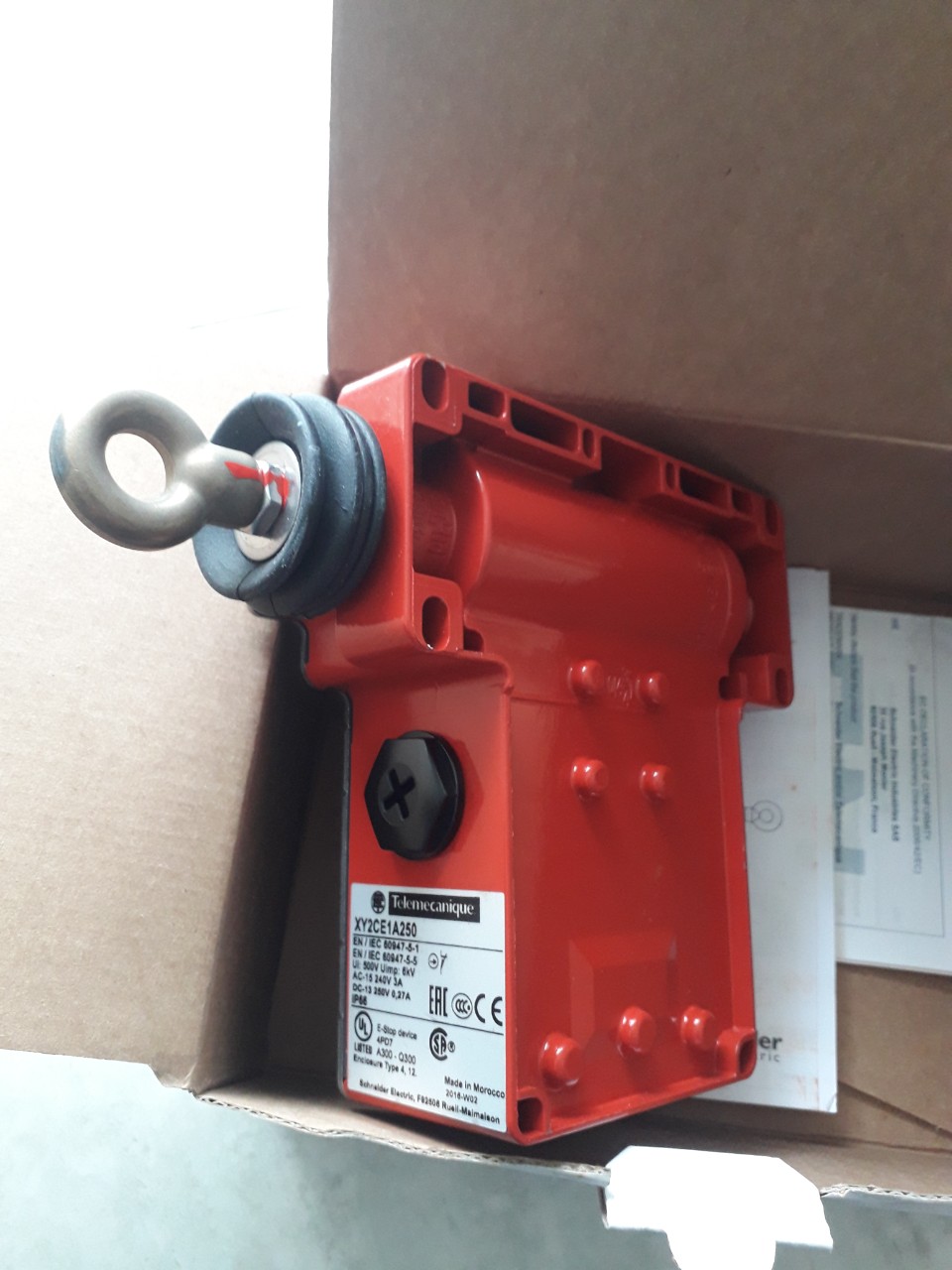 Mua tại TiktokChốt công tắc kéo dây dừng khẩn cấp / công tắc chốt dây Telemecanique Schneider XY2CE1A250, 1NC + 1 NO, nút bấm khởi động Nhãn hiệu/Nhà sản xuấtSchneider Loại sản phẩm: Công tắc Dừng khẩn cấp / Công tắc E-Stop XY2CE1A250 Schneider Cơ chế hoạt động: Chốt, kéo Điện áp hoạt động tối đa 500 V (Cách điện) Nhiệt độ vận hành quy trình tối thiểu-25 ° C Nhiệt độ vận hành quy trình tối đa 70 ° C Đánh giá IPIP66 Kiểu kết nối Screw Terminal Đạt tiêu chuẩnEN/IEC 60204-1;EN/IEC 60947-5-1;EN/IEC 60947-5-5;EN/ISO 13850;UL 508;Machinery directive 2006/42/EC;CSA C22.2 No 14;CCC;CSA Chiều dài229 mm Chiều rộng105 mm Chiều cao142 mm