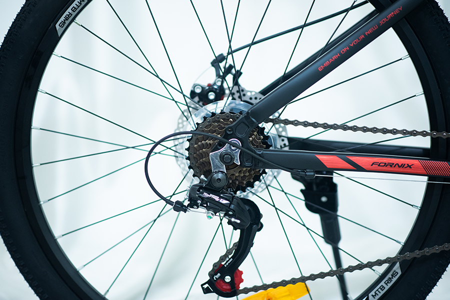 Khung sườn hợp kim nhôm Bộ truyền động 21 tốc độ ( 3 đĩa và 7 líp) Vòng bánh 27.5 inches Trọng lượng 15 Kg FORNIX M8 là dòng xe đạp địa hình với thiết