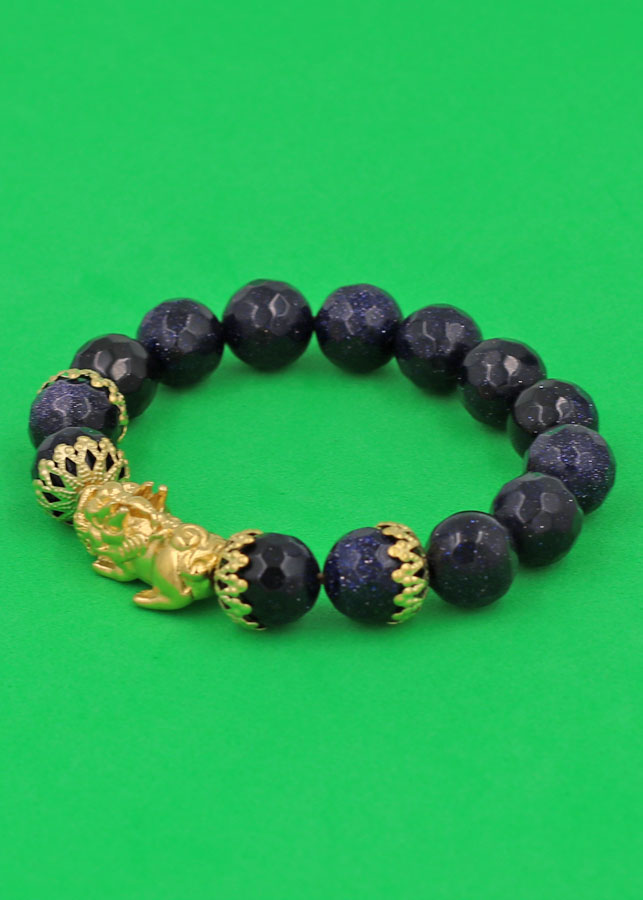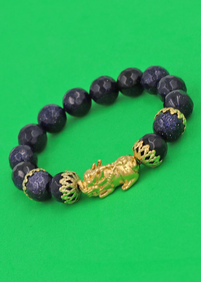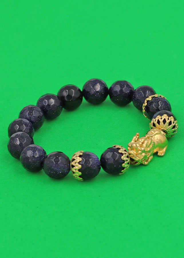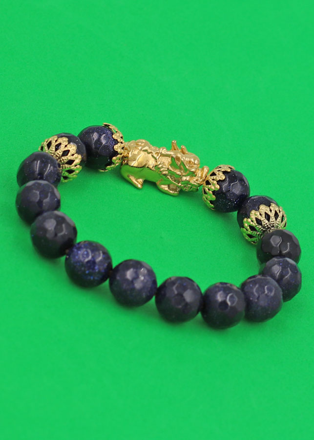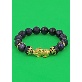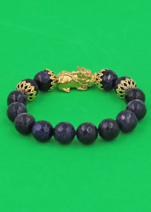 ✨Chuỗi đeo tay Đá Lam Sa Cắt Giác 12 ly - cẩn Tỳ Hưu Phong Thủy Chiêu Tài Lộc inox vàng VLSGTHBKV12 - hợp mệnh Mộc, mệnh Thủy
