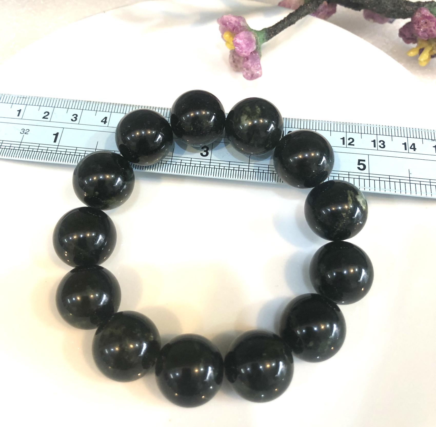 Vòng tay ngọc Serpentine 100% đá tự nhiên không qua xử lý, khai thác và chế tác tại Việt Nam. Màu: xanh đen đậm gần như màu đen, xanh ô liu , xanh pha trắng