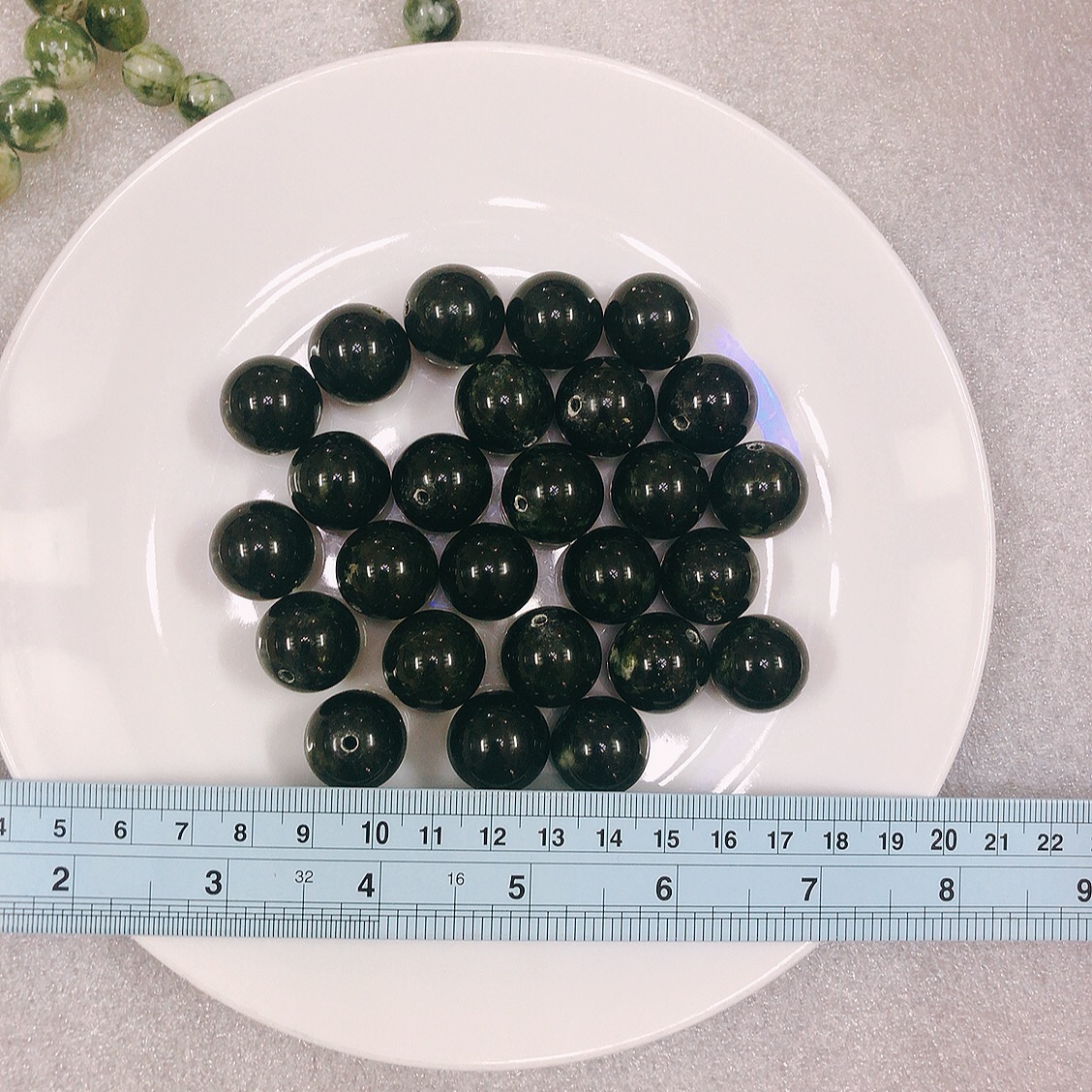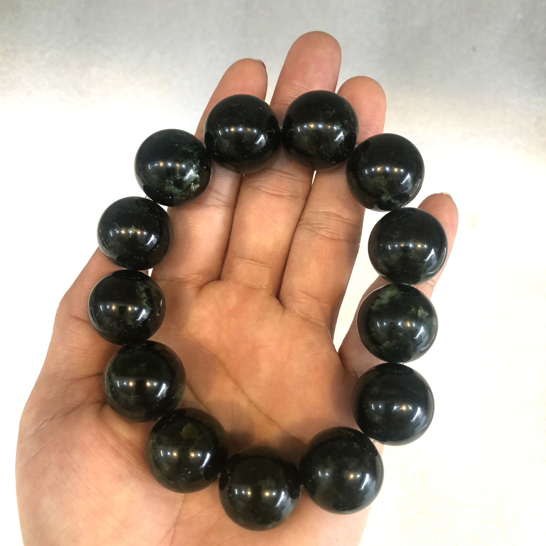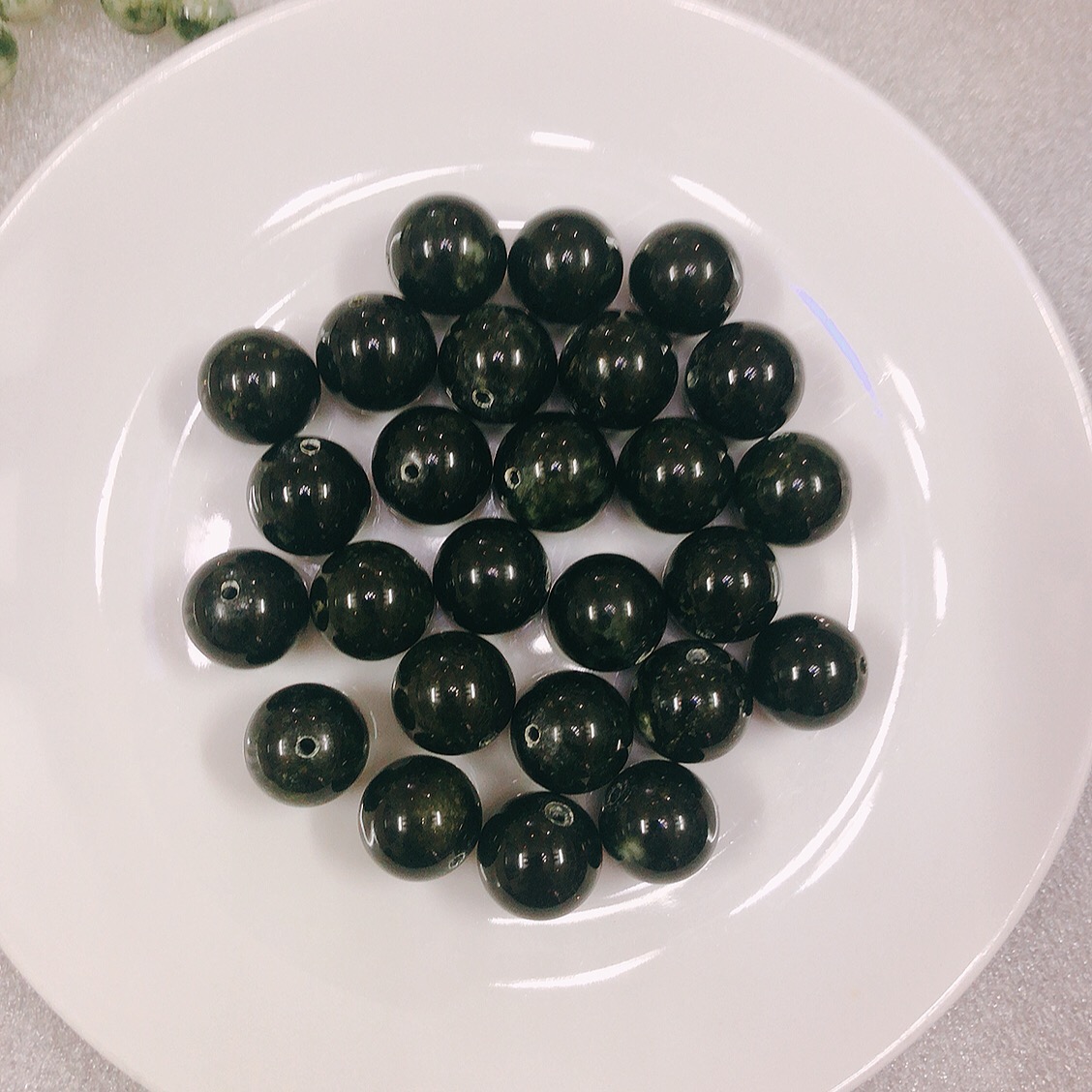 Chất liệu: đá ngọc serpentine 100% của Việt Nam Kích thước: Li hột là 17 li (1.7 cm) màu xanh lá đen bóng tinh khiết Dùng để đeo tay hoặc để lần tràng hạt khi