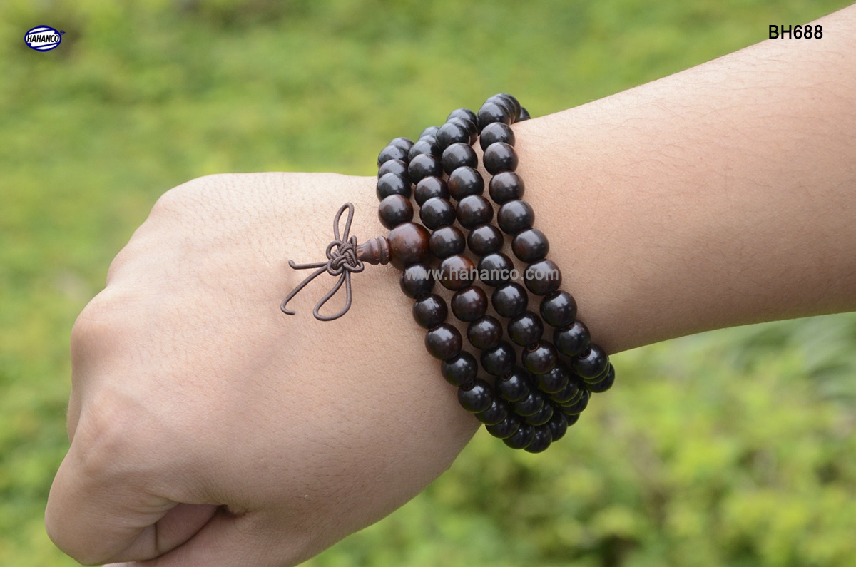 Chuỗi tràng hạt 108 hạt bằng gỗ trắc, được làm thủ công rất đẹp, có thể cuốn trên cổ tay 3 đến 5 vòng. món đồ trang sức cá tính.