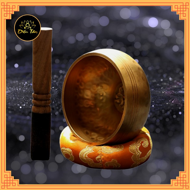 Tên sản phẩm: Chuông bát xoay Nepal "Tây Tạng" bằng Đồng, cây gõ mõ và đế - Chiếc chuông biết hát thanh đồng thư giãn, êm dịu