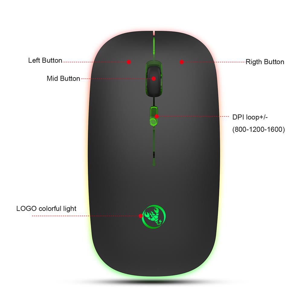 Description: Smooth, precise andwireless optical 7-button mouse with receiver and colorful backlight effect for game enthusiasts. Features: Features: Optical laser technology for precise control, built-in rechargeable lithium battery,TYPE-C interface quickly charge, There is no need