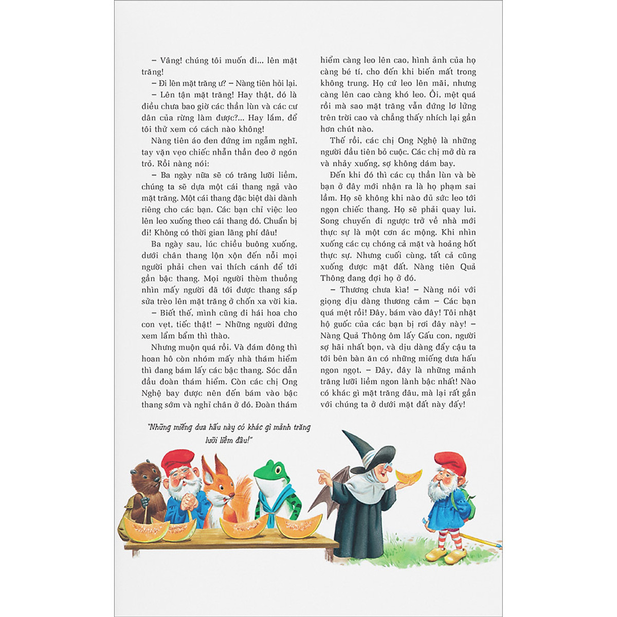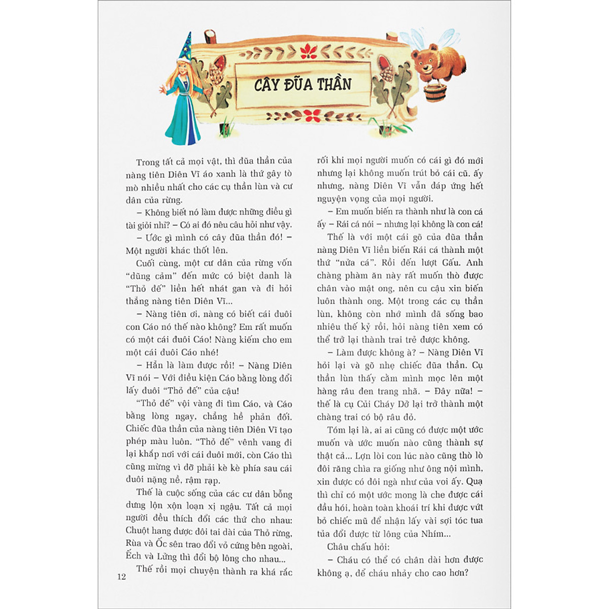 Sáu nàng tiên đẹp nhất (Diên Vĩ, Uất Kim Hương, Tầm Ma, Phong Lan, Trái Mơ và Quả Thông) đã có kì nghỉ ngắn tại làng các cụ thần lùn. Quãng thời gian này đã diễn ra vô số câu chuyện thú vị. Đó là món cà-rem vô cùng ngọt ngào, hấp dẫn của nàng tiên bầu bĩnh Trái Mơ, buổi hòa nhạc độc đáo mừng sinh nhật Tiên Nữ hoàng. Rồi cây đũa thần kỳ của nàng tiên Diễn Vĩ áo xanh đã thêm cho cậu Dế một chiếc đuôi hay tặng các chị Kiến những chiếc gùi, rồi cho Sâu róm một ván trượt để đi thật nhanh… Cuốn sách nằm trong bộ Chuyện rừng gồm 4 tập: Cư dân của rừng, Thần lùn, Những ông khổng lồ, Tiên nữ do Peter Holeinone viết lời, Tony Wolf minh họa. Đây là một xứ sở lạ lùng của những cư dân tinh nghịch, các cụ thần lùn láu lỉnh, bác khổng lồ hiền lành và các tiên nữ tốt bụng… Tất cả cộng đồng ấy tạo nên một thế giới sinh động với những tiếng cười hài hước, dí dỏm và vô vàn những điều diệu kì mà chỉ trong bộ Chuyện rừng mới có. Điểm đặc biệt của bộ sách không chỉ nằm ở bốn câu chuyện vui nhộn, ly kỳ, đặc sắc do tác giả Peter Holeinone viết lời mà còn ở những minh họa vô cùng sống động do họa sĩ Tony Wolf vẽ. Những nét vẽ tươi tắn, đầy màu sắc sẽ khiến các bạn đọc nhỏ hứng thú lật giở từng trang sách, dõi theo những chuyến phiêu lưu kỳ thú.