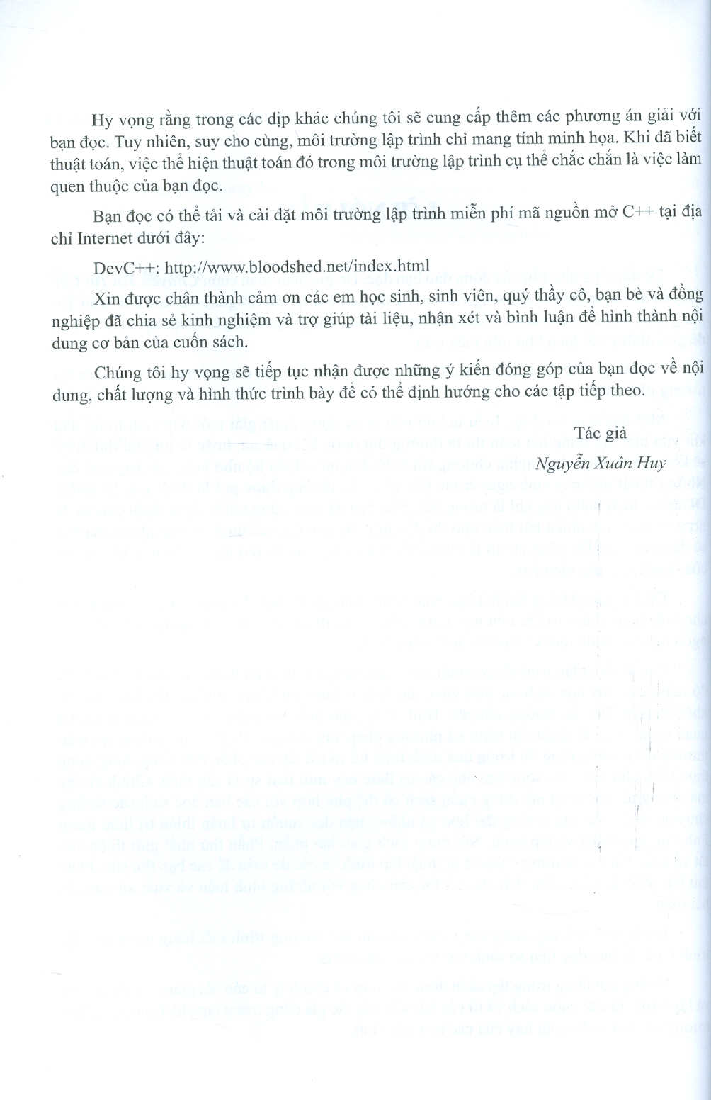 Trong tập sách này cũng cung cấp toàn văn các chương trình viết bằng ngôn ngữ lập trình C++ để bạn đọc tiện so sánh với lời giải của mình.