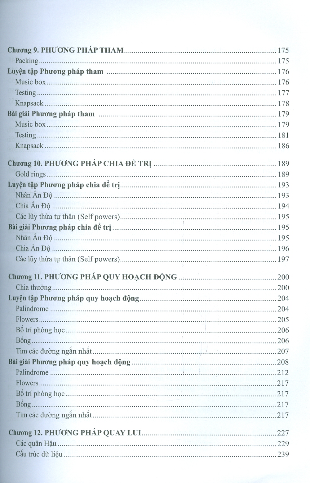 Các kĩ thuật lập trình được minh họa qua những bài toán cụ thể tương đương với trình độ nâng cao của học sinh và sinh viên, đặc biệt là bám sát Chương trình Tin học cho các khối chuyên Tin của trường chuyên. Hình thức phát biểu bài toán suy cho cùng là không quan trọng. Các kĩ thuật lập trình và phương pháp xây dựng thuật giải cho những bài toán thường được dùng rộng rãi trong quá trình thiết kế và cài đặt các phần mềm ứng dụng trong thực tiễn, cho nên việc sớm làm chủ các tri thức này mới thật sự là cần thiết. Chính vì vậy mà chúng tôi cho rằng nội dung cuốn sách có thể phù hợp với các bạn học sinh các trường chuyên, sinh viên các trường đại học và những bạn đọc muốn tự hoàn thiện tri thức trong lĩnh vực giải thuật và lập trình. Nội dung sách gồm hai phần. Phần thứ nhất giới thiệu vắn tắt về bản chất các phương pháp và kĩ thuật lập trình và các đề toán để các bạn thử sức. Phần thứ hai trình bày và phân tích chi tiết lời giải cùng với những bình luận và xuất xứ của các bài toán.