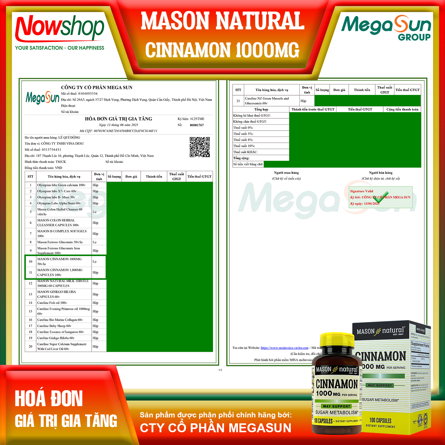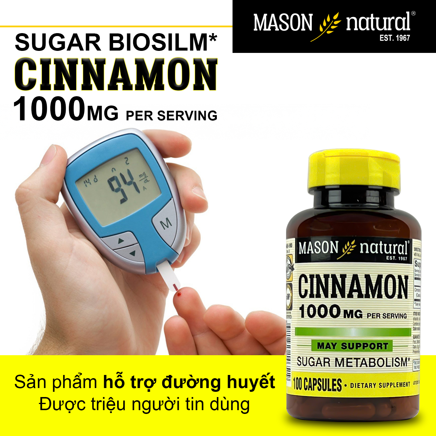 MASON CINNAMON 1000MG - ỔN ĐỊNH ĐƯỜNG HUYẾT TỰ NHIÊN - SỐNG KHỎE MỖI NGÀY!