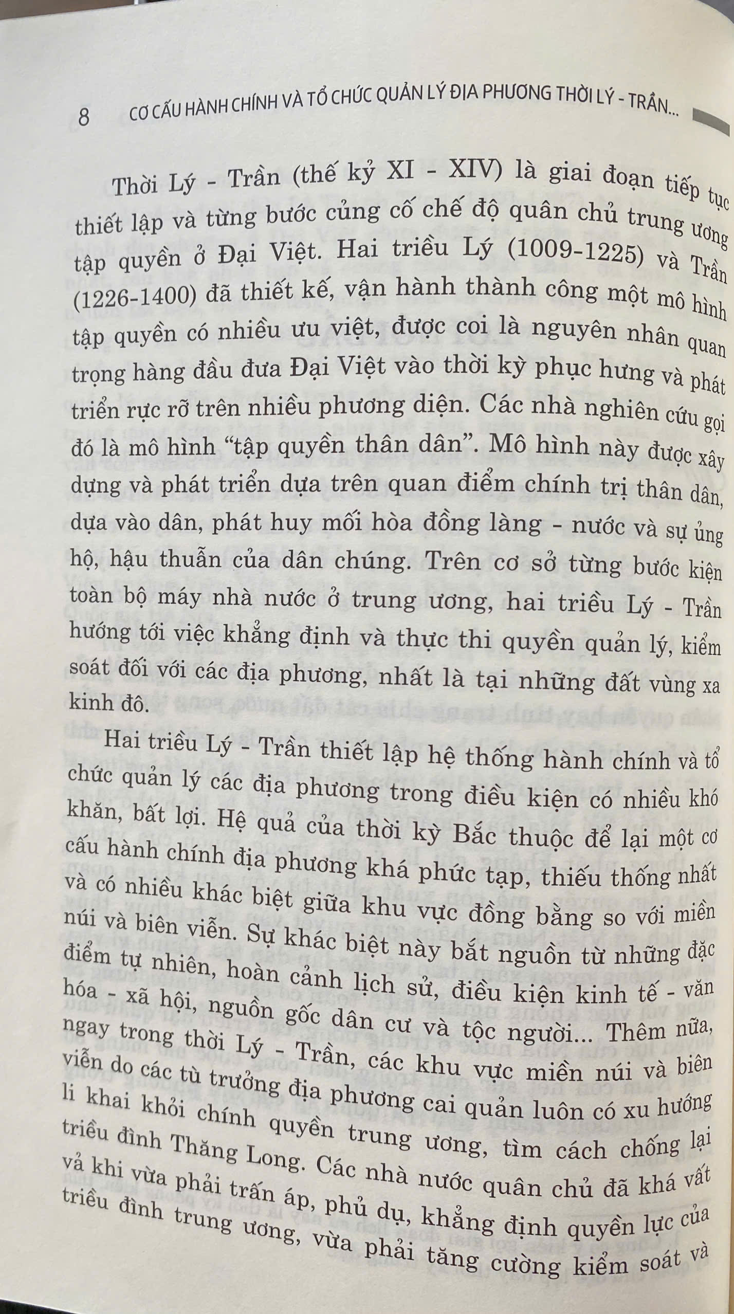 Cuốn sách CƠ CẤU HÀNH CHÍNH VÀ TỔ CHỨC QUẢN LÝ ĐỊA PHƯƠNG thời Lý - Trần (Thế kỷ XI - XIV) của TS. Phạm Đức Anh - Phó Viện trưởng Viện Việt Nam học và Khoa học phát triển, Đại học Quốc gia Hà Nội.