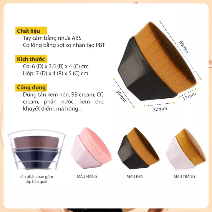 Ứng dụng rộng rãi: tuyệt vời để thoa và trộn phấn nền, kem lỏng, kem, kem che khuyết điểm, phấn phủ, phấn má hồng, phấn highllight.