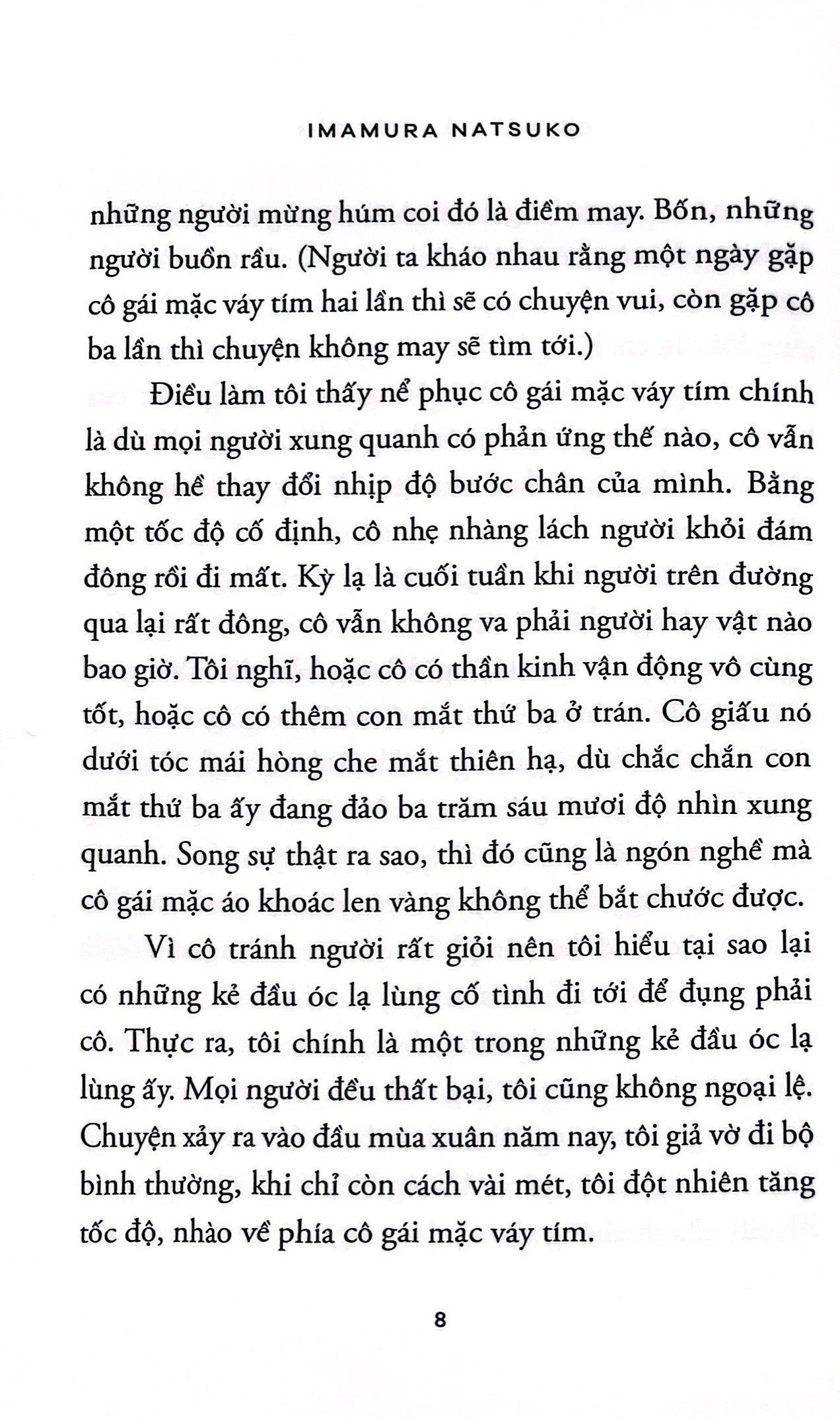 Một sự ám ảnh mập mờ giữa điên rồ và lố bịch khiến Cô gái mặc váy tím trở nên khác biệt, đủ để kích thích trí tò mò và khơi gợi sự đồng cảm trong lòng độc giả.