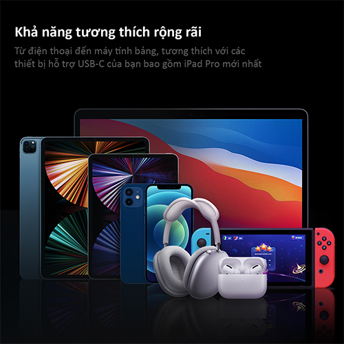 - Sạc nhanh tối đa 75W – đủ công suất cho laptop, điện thoại, tablet - Tích hợp sẵn cáp USB-C rút gọn tiện dụng, không lo rối dây khi dùng - Trang bị thêm
