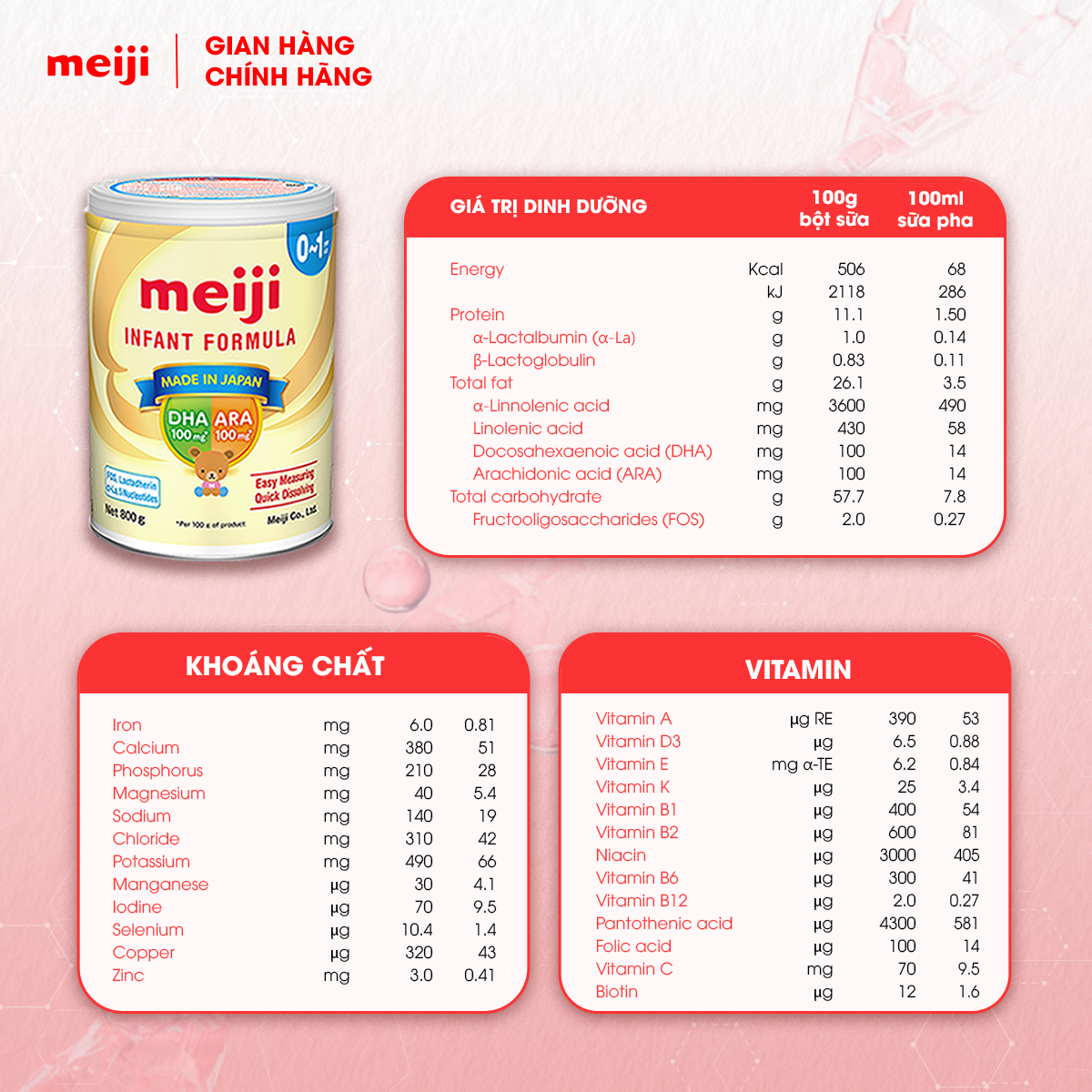 Sữa Meiji Infant Formula lon 800g nhập khẩu cho trẻ 0-1 tuổi - Sữa cho bé yêu