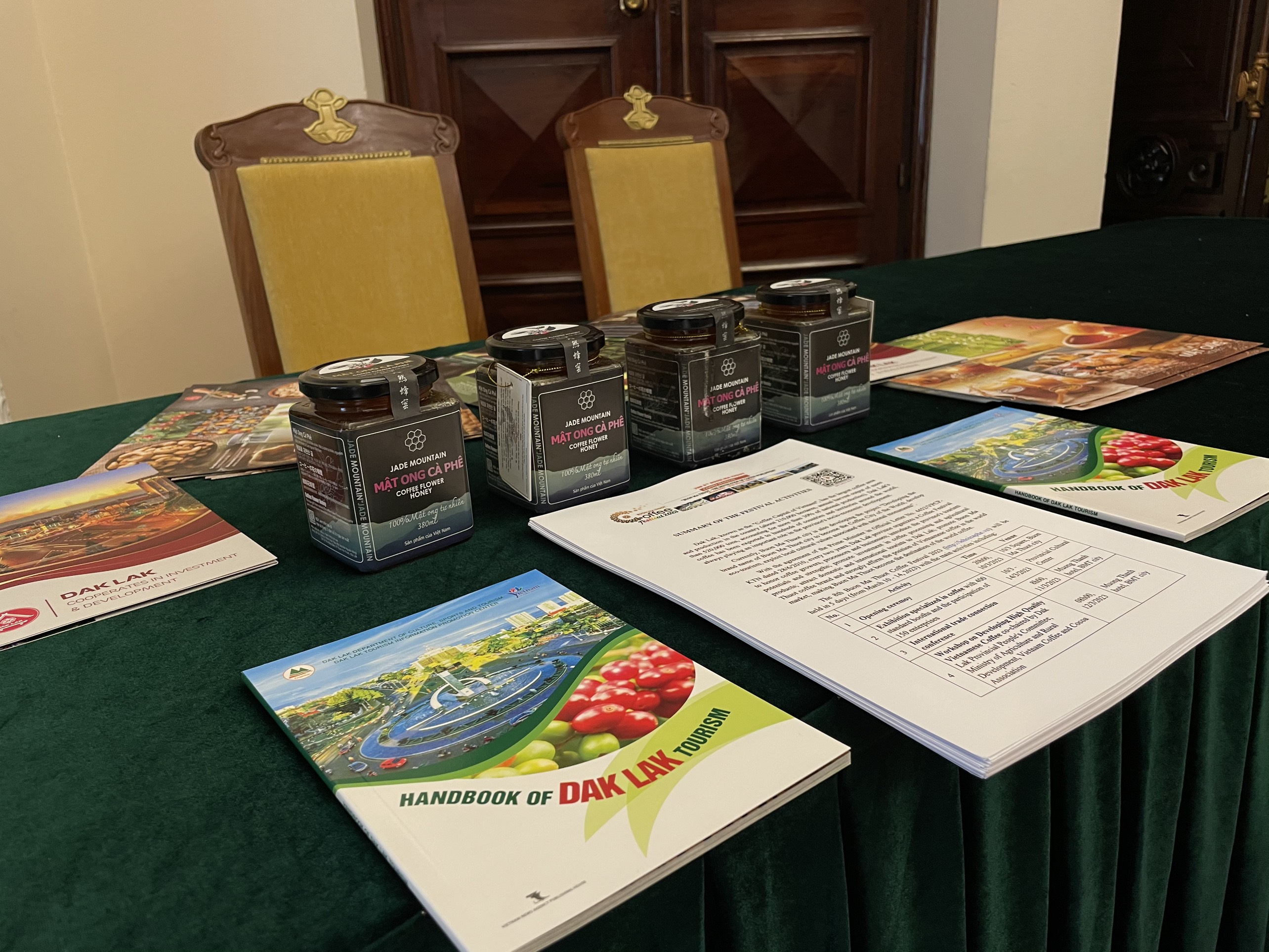 - Mật ong hoa cà phê Jade Mountain là mật ong chín tự nhiên, được vắt trực tiếp từ tổ, mật được lấy từ hoa Cà phê bởi những chú ong Apis Mellifera.