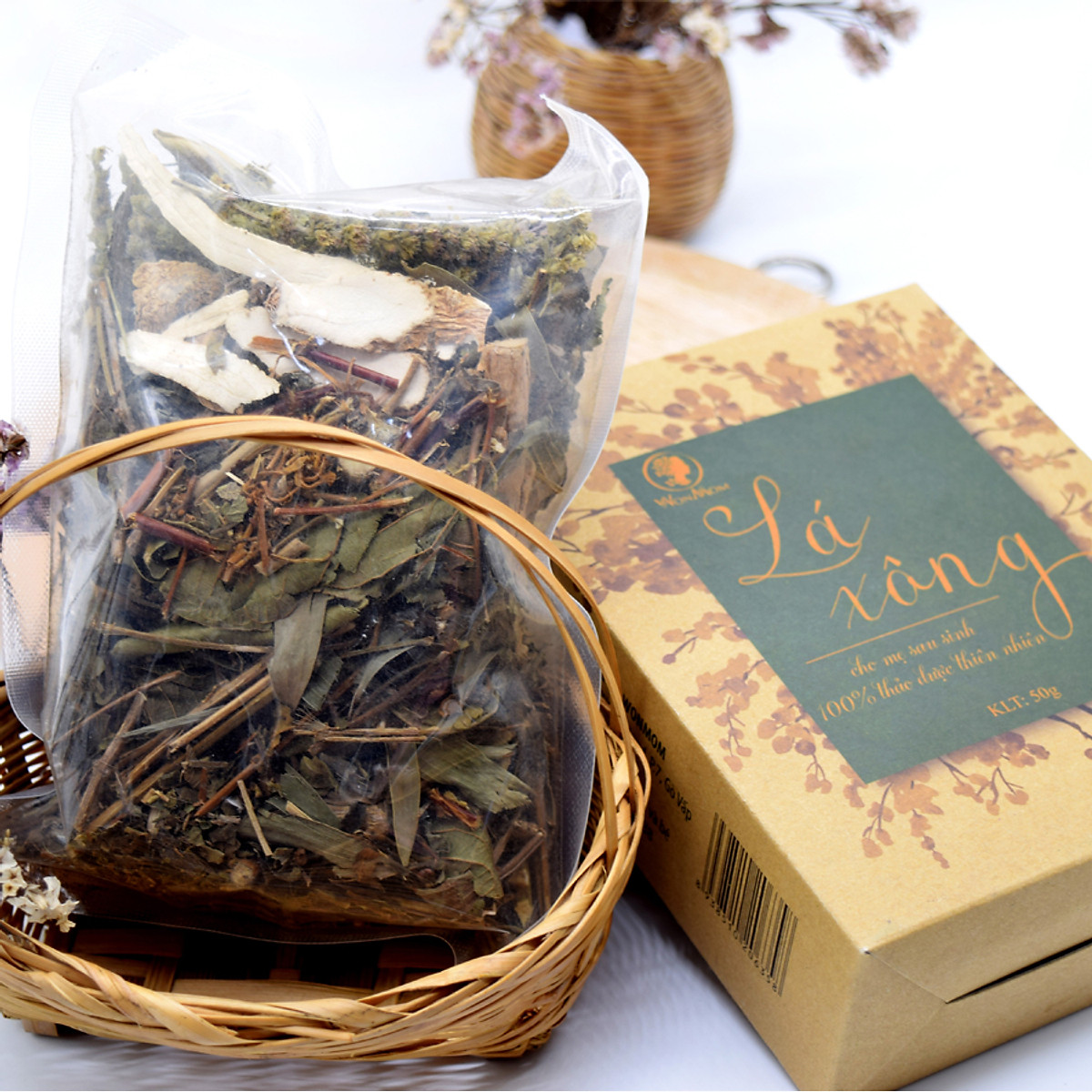 - Lá Xông Tắm Toàn Thân Thảo Dược 1 Lần Dùng Cho Mẹ Sau Sinh Wonmom Gói 50Gr Giúp Xông Hơi Thải Độc - Hồi Phục Sức Khỏe - Tránh Trầm Cảm Sau Sinh -