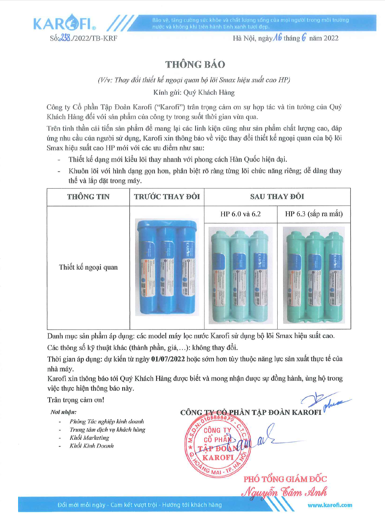Combo Bộ 10 Cấp Lõi Lọc Đúc Nguyên Khối Karofi SMAX Hiệu Suất Cao HP 6.2 Hydrogen - Hàng Chính Hãng