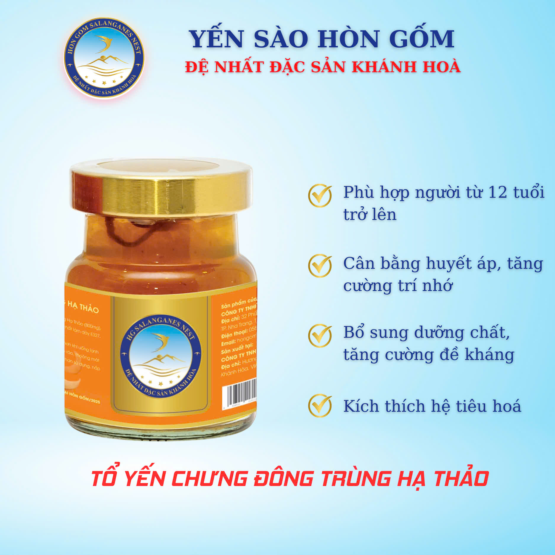📢 Hãy sở hữu ngay Nước Yến Sào Đông Trùng Hạ Thảo Yến Sào Hòn Gốm Khánh Hòa để chăm sóc sức khỏe cho bản thân và gia đình! Đặt mua ngay để được giao hàng tận nơi, nhận ưu đãi hấp dẫn!