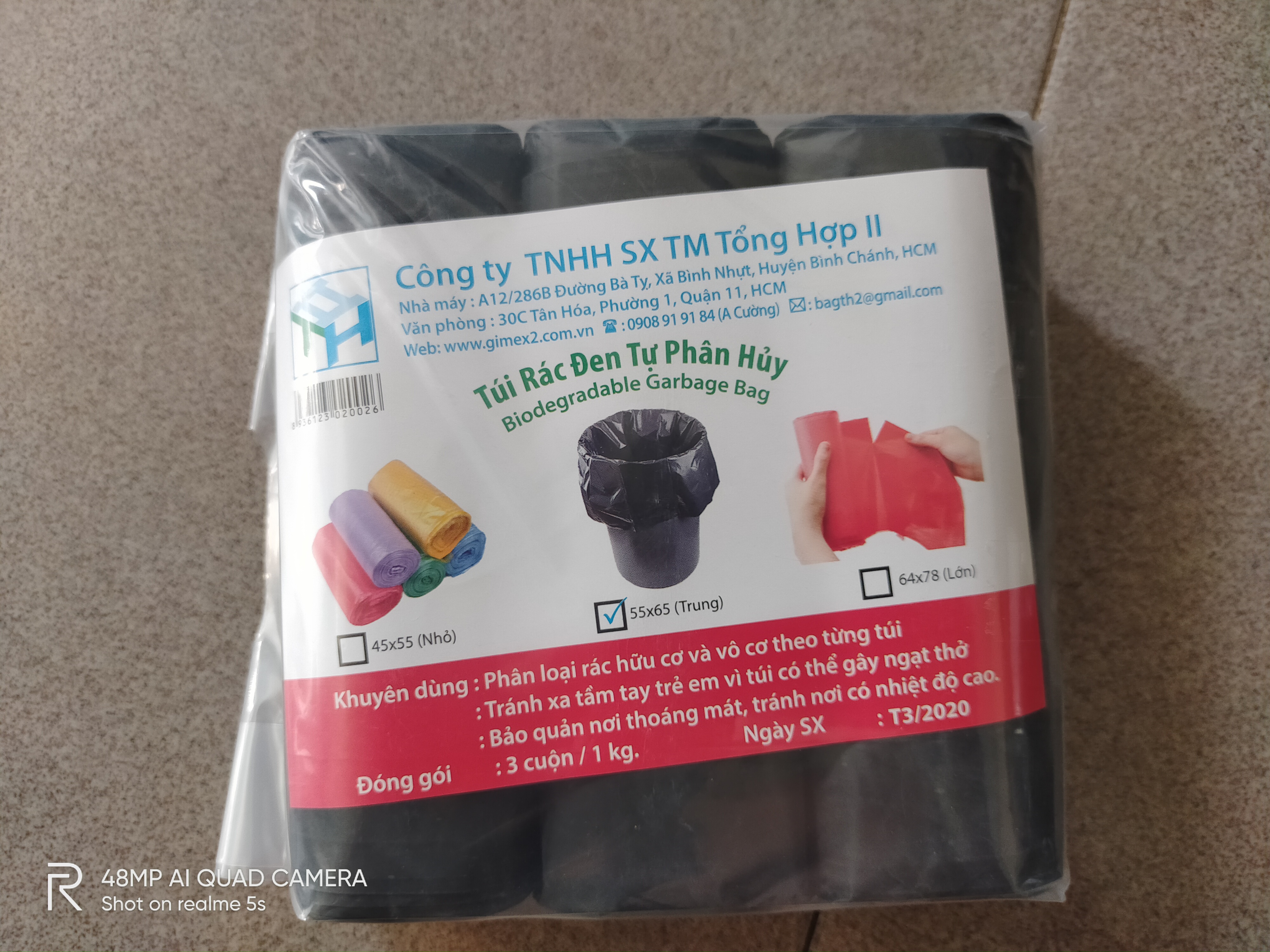 Bao đựng rác sinh học, Túi đựng rác tự phân huỷ, Bịch đựng rác thải gia đình * Thông tin sản phẩm: - Xuất xứ: Việt Nam - Size : + Trung : 55x65