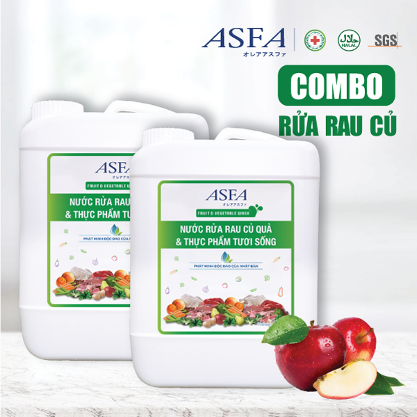 - Công dụng Diệt khuẩn và khử trùng: ASFA Fruit & Vegetable tiêu diệt các loại vi khuẩn, nấm mốc và vi rút gây hại cho trái cây và thực phẩm, giúp ngăn chặn sự phát triển của vi khuẩn và bảo vệ sức khỏe của người tiêu dùng. Ngăn chặn trái cây bị hỏng: Dung dịch HOCl trong sản phẩm có khả năng ức chế ethylene, một chất kích thích sự tăng trưởng của trái cây; nhờ đó giúp duy trì chất lượng của trái cây trong thời gian dài. An toàn và không gây ô nhiễm: ASFA Fruit & Vegetable là một sản phẩm an toàn, không gây độc hại cho con người và không gây ô nhiễm môi trường. Nó không để lại mùi hương hay vị kháng khó chịu trên trái cây sau khi sử dụng, giữ cho thực phẩm luôn tươi ngon và an toàn cho sức khỏe.