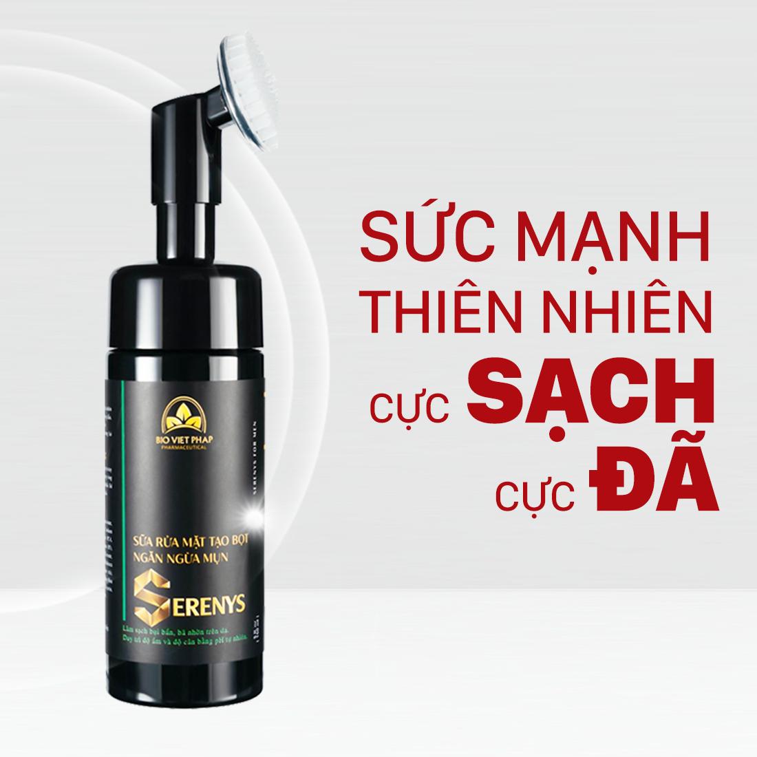 Bọt rửa mặt Serenys 150ml Bọt rửa mặt Serenys tạo bọt sẵn làm sạch sâu từng lỗ chân lông là sản phẩm chăm sóc da mụn từ tinh dầu Tràm trà hoàn toàn từ thiên nhiên. Sản phẩm không chứa các hóa chất gây hại cho da như hương liệu, phẩm màu, cồn, dầu khoáng, paraben. Có thể sử dụng hàng ngày để giúp da luôn sạch khỏe, trắng sáng và mịn màng. CÔNG DỤNG SỮA RỬA MẶT NAM SERENYS Sữa rửa mặt tạo bọt ngăn ngừa mụn Serenys là hoàn hảo cho nam giới. Giúp:
