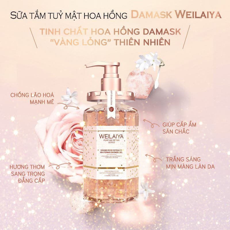 Sữa tắm trắng da cánh hoa hồng Damask Weilaiya Grand Rose Extracts Whitening Gel - MYPHAM.VIP