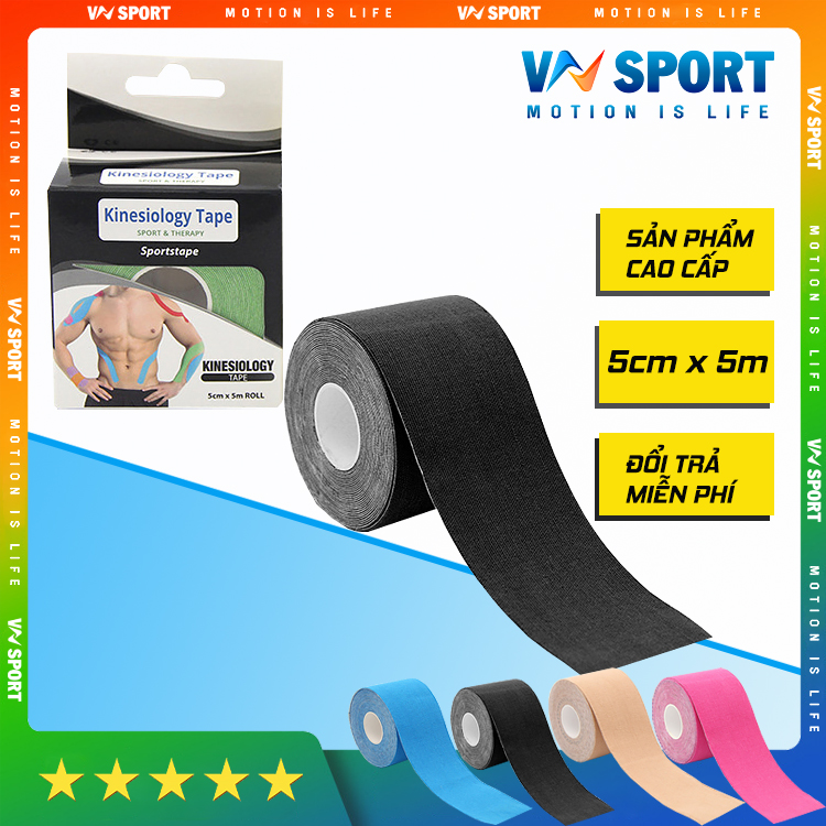 - Dòng băng keo vải dán cơ thể thao Kinesiology Tape bản 5cm x 5m sẽ rất phù hợp với bạn cho bất kỳ môn thể thao nào. Ưu điểm: có độ co giãn tốt, độ bám dính cao và giữ cơ rất tốt cho dù bạn hoạt động ở cường độ cao