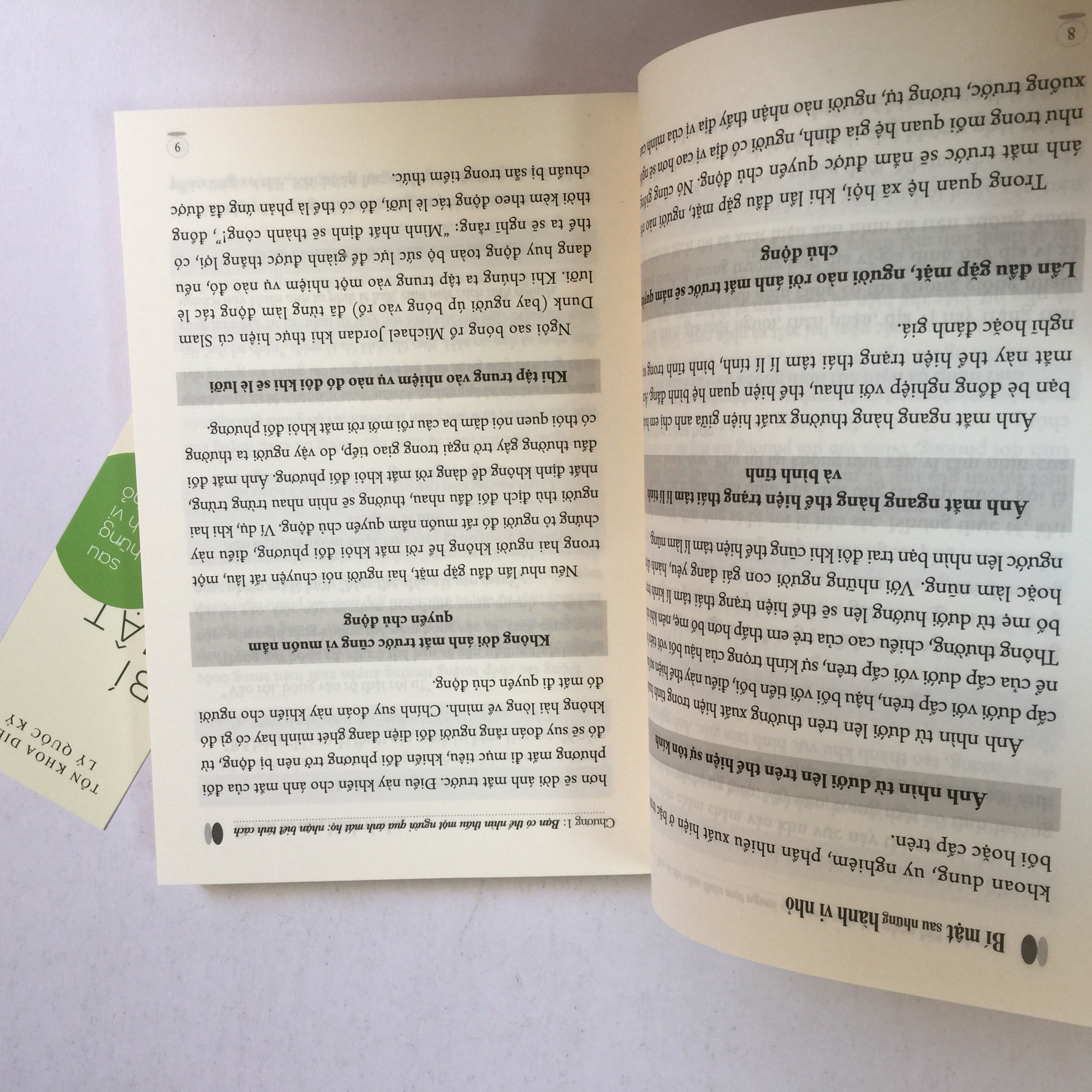 Bí Quyết Đọc Tâm - Thấu Hiểu Người Khác Chỉ Trong Giây Lát: Xã hội giống như một ván cờ mà ở đó, một nước đi dù sai lầm hay đúng đắn sẽ trực tiếp ảnh hưởng đến tất cả những lựa chọn tiếp theo. Con người là một “social animal” (loài động vật xã hội), cho nên loài người không thể tránh khỏi việc phải tương tác với thế giới bên ngoài dù muốn hay không. “Bí quyết đọc tâm” dẫn dắt chúng ta lên một hành trình tâm lý học gần gũi và trực quan. Với lối viết đặc biệt, phong cách trình bày hiện đại, cuốn sách này đem đến cho độc giả cái nhìn toàn diện, thú vị về các hiện tượng tâm lí phổ biến của thời đại; đồng thời giới thiệu tới các bạn rất nhiều bộ phim tâm lí nổi tiếng thế giới- những bộ phim có thể khiến mọi trái tim phải rung động. Hy vọng cuốn sách này sẽ trở thành món quà hữu ích đối với những ai thật tâm muốn thấu hiểu người khác. Bí Mật Sau Những Hành Vi Nhỏ “ Hoạ hổ hoạ bì nan hoạ cốt, tri nhân tri diện bất tri tâm” (vẽ cọp chỉ vẽ được bộ da, chứ khó mà vẽ được bộ xương của cọp; biết người thì biết mặt, chứ khó biết được tấm lòng của người ta) – rõ ràng nhìn thấu một người không phải chuyện dễ dàng. Tuy nhiên nếu giỏi quan sát thì bạn có thể đoán biết tâm lí, tính cách một con người thông qua hành động, cử trỉ và cách ăn nói của họ, thậm chí ngay trong lần đầu gặp mặt bạn cũng có thể biết được đối phương là người như thế nào. Bạn muốn có được cái nhìn thông minh soi rõ từng thứ từ việc nhỏ đến việc lớn trong cuộc đời và bạn sẽ mỉm cười khi thấy những việc quan trọng hơn sau đó. Bạn biết đấy người khôn ngoan làm chủ cuộc đời mình trong từng chuyện nhỏ. Nhỏ đến mức một ánh mắt, 1 cái bắt tay, một cái quay đầu, …. Họ đều hiểu rõ. Muốn nhìn thấu, soi rõ từng chút một mọi việc trong cuộc sống thì hãy dành thời gian để đọc cuốn sách Bí mật sau những hành vi nhỏ. Cảm ơn bạn đã tham khảo combo sách này. Chúc một ngày tốt lành!