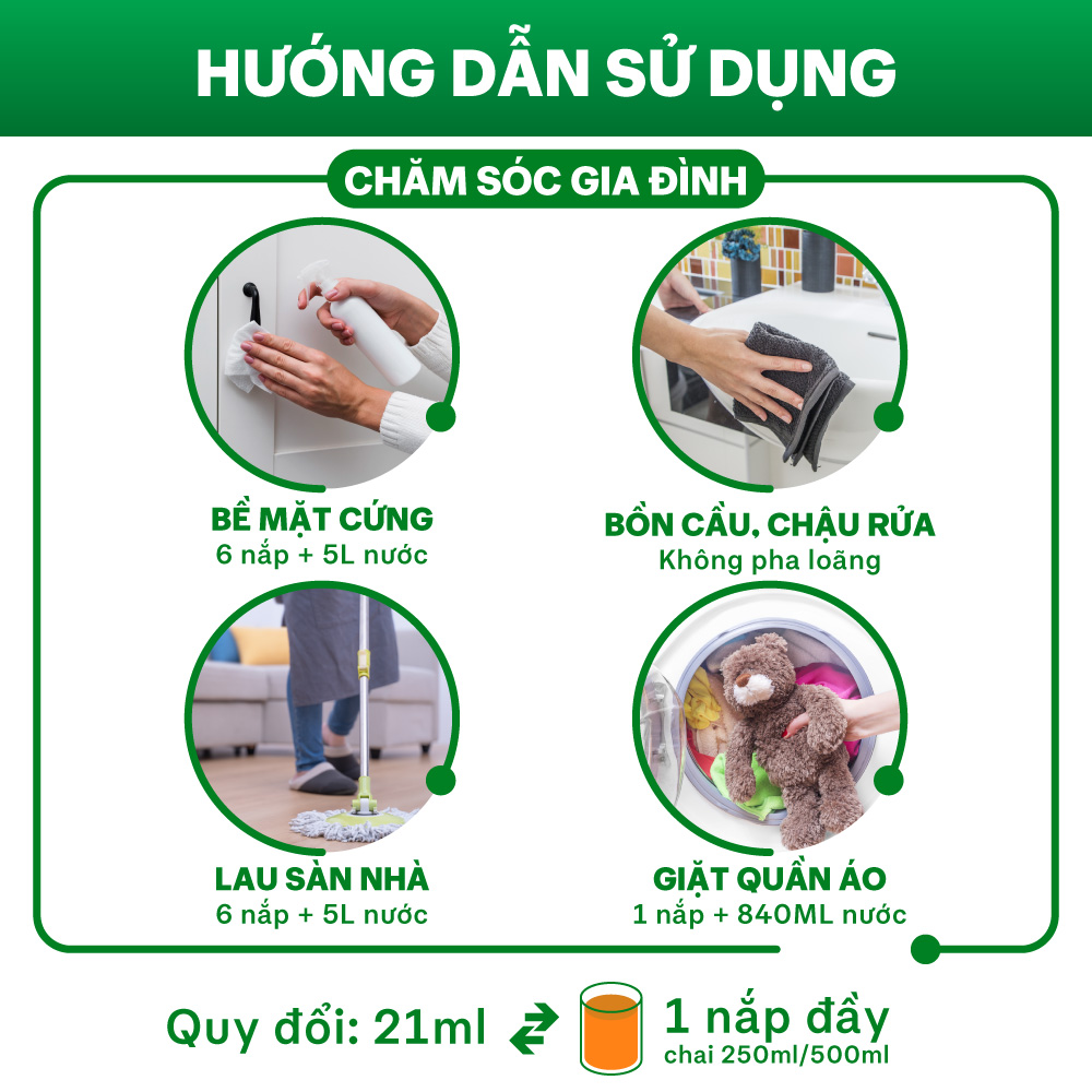 Giặt: pha 21ml* dung dịch Dettol với 840ml nước.