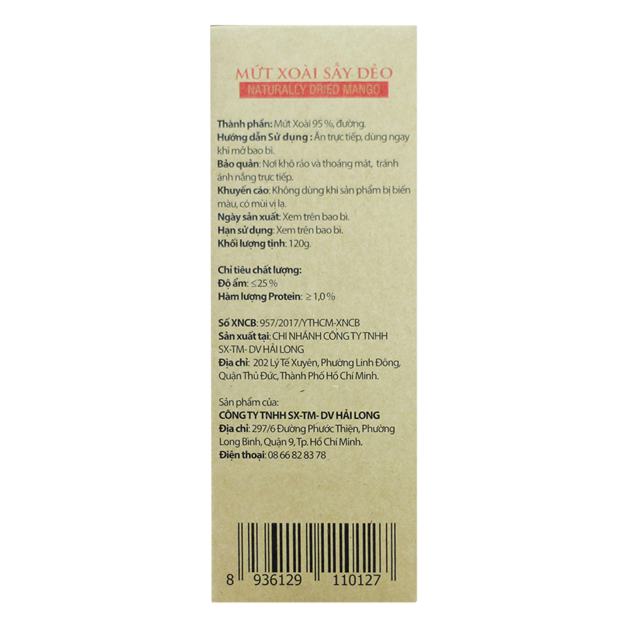 - Combo 3 Hộp Mứt Xoài Sấy Dẻo Hải Long (120g / Hộp) là món ăn vặt được nhiều người ưa chuộng bởi độ dẻo, vị chua chua ngọt ngọt thơm lừng, rất dễ ăn