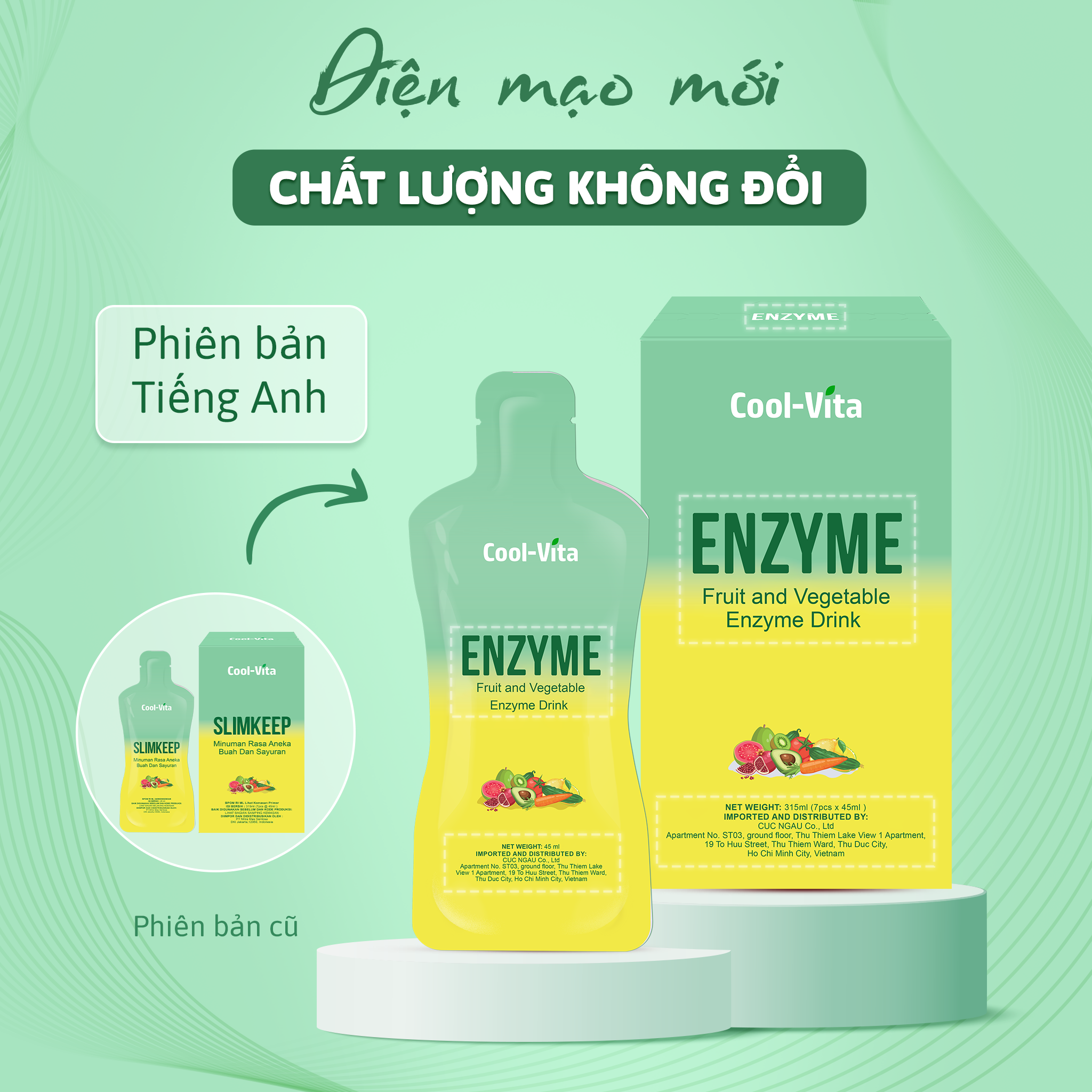 Mua tại TiktokCombo 2 Hộp Nước Uống Bổ Sung Enzyme Hỗ Trợ Tiêu Hoá, Thanh Lọc Cơ Thể Cool-Vita (45 ml× 7 túi)/hộp Nước uống Enzyme Cool-Vita được chiết xuất từ các loại trái cây rau quả đã được chế biến thành Enzyme và chứa prebiotic fos, gos và xos giúp tăng khả năng miễn dịch và cải thiện sức khỏe tiêu hóa để thức ăn và khoáng chất được hấp thu tốt hơn. Nước Uống Enzyme Cool-Vita Chứa fructooligosacarit (FOS) galactooligosacarit (GOS), xylooligosaccharide (XOS) giúp tăng cường miễn dịch, tăng số lượng vi khuẩn tốt và tăng cường sức khỏe tiêu hóa. - Đặc điểm vượt trội của Nước Uống Bổ Sung Enzyme Hỗ Trợ Tiêu Hoá, Thanh Lọc Cơ Thể Cool-Vita: Chiết xuất từ các loại trái cây và rau quả giúp bổ trợ dinh dưỡng đầy đủ hơn. Lượng calo thấp với mỗi gói chỉ chứa 40kcal. Không có chất tạo màu và chất bảo quản. Không thêm muối và chất béo.