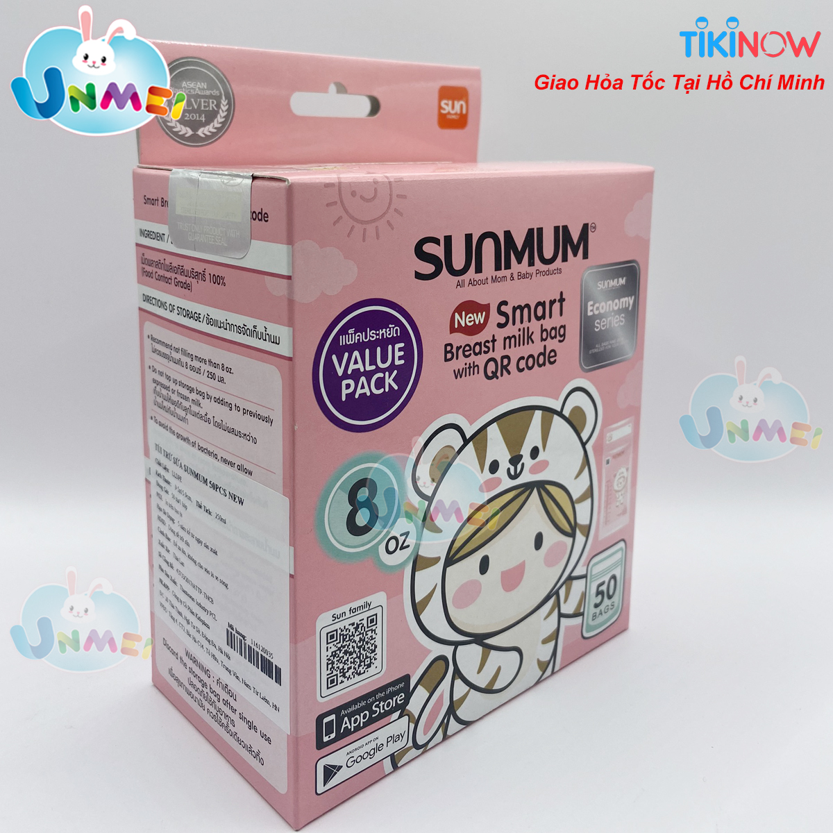 • Thương hiệu túi trữ sữa Sunmum đạt giải thưởng chất lượng ASEAN năm 2014. Hướng dẫn sử dụng: Xé mép để mở miệng túi, cho sữa vào, ép hết không khí và đóng chặt túi. Bảo quản túi sữa trong tủ lạnh hoặc tủ đông trong thời gian quy định. Cho sữa vào bình để sử dụng.