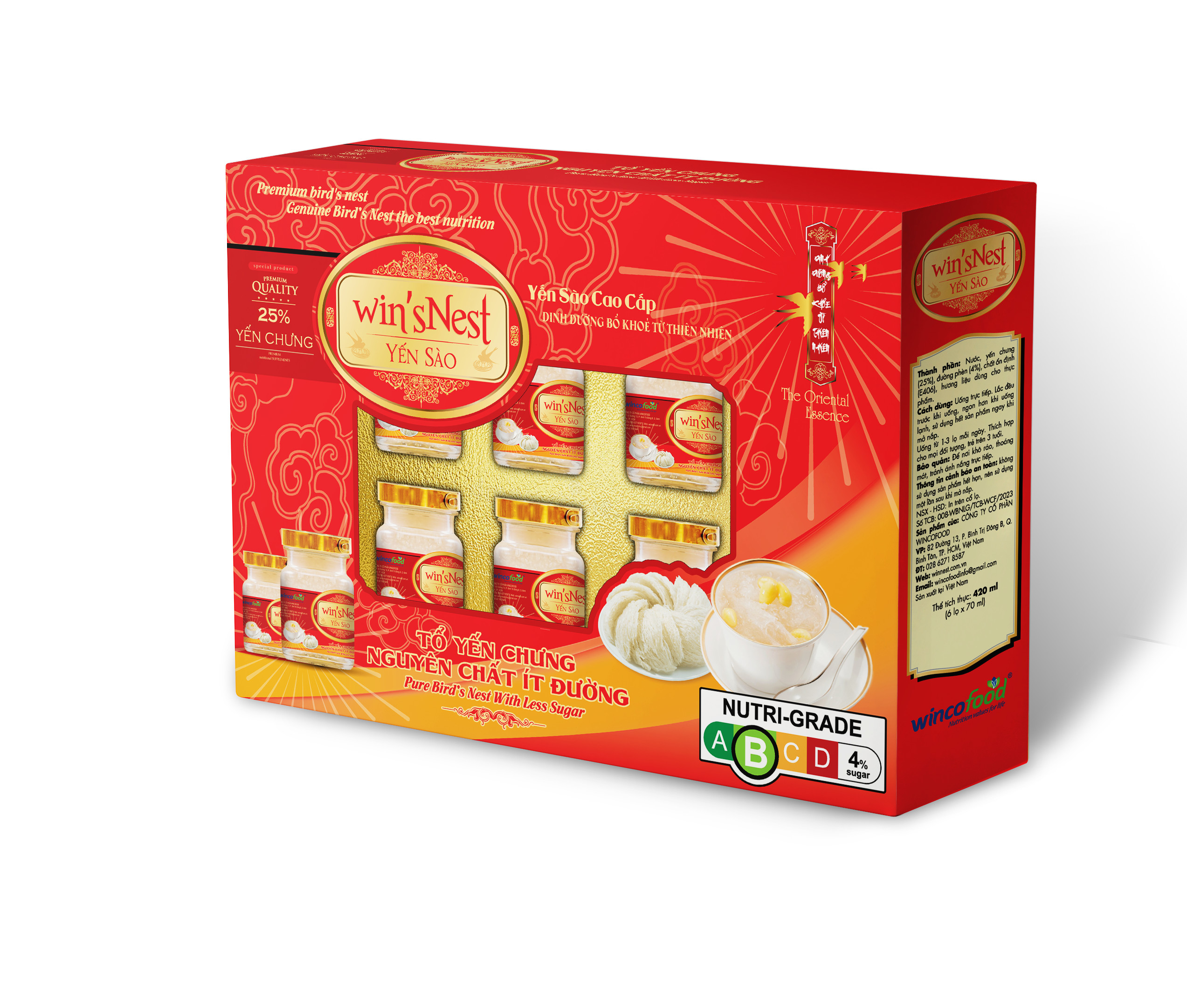 - Yến sào: Hỗ trợ tăng sức đề kháng cho cơ thể, chống lão hóa, ổn định thần kinh, trí nhớ, kích thích tiêu hóa, phục hồi sức khỏe nhanh chóng trong thời gian dưỡng bệnh. Đối tượng sử dụng: thích hợp cho mọi đối tượng đăc biệt trẻ từ 3 tuổi trở lên. Sản xuất: Việt Nam
