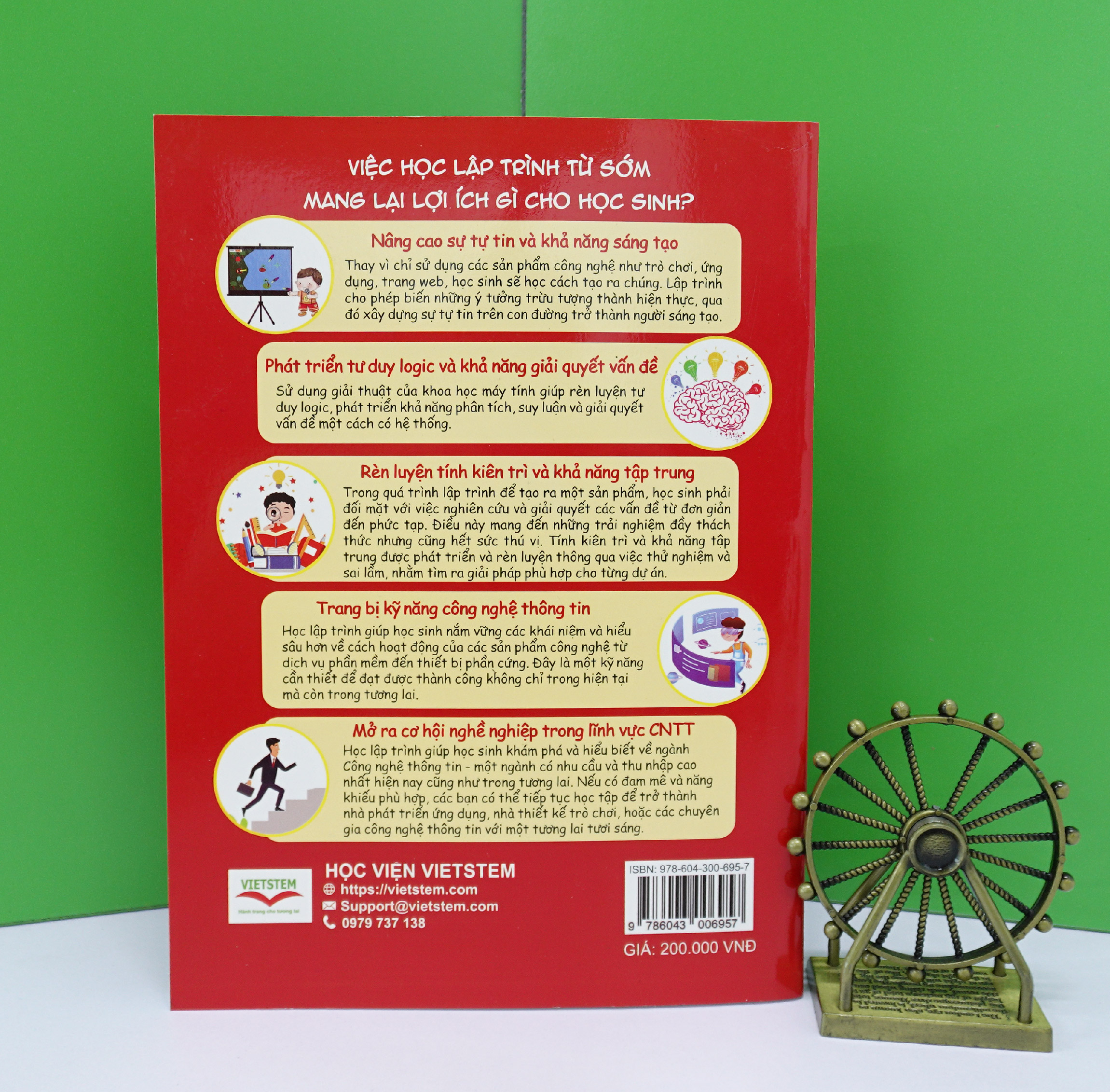 Cuốn sách Coding 5 nằm trong bộ sách Coding từ lớp 1 đến lớp 12, được VIETSTEM đầu tư nghiên cứu và biên soạn với mong muốn mang lập trình đến mọi học sinh Việt Nam, góp phần xây dựng một thế hệ học sinh mới yêu công nghệ.