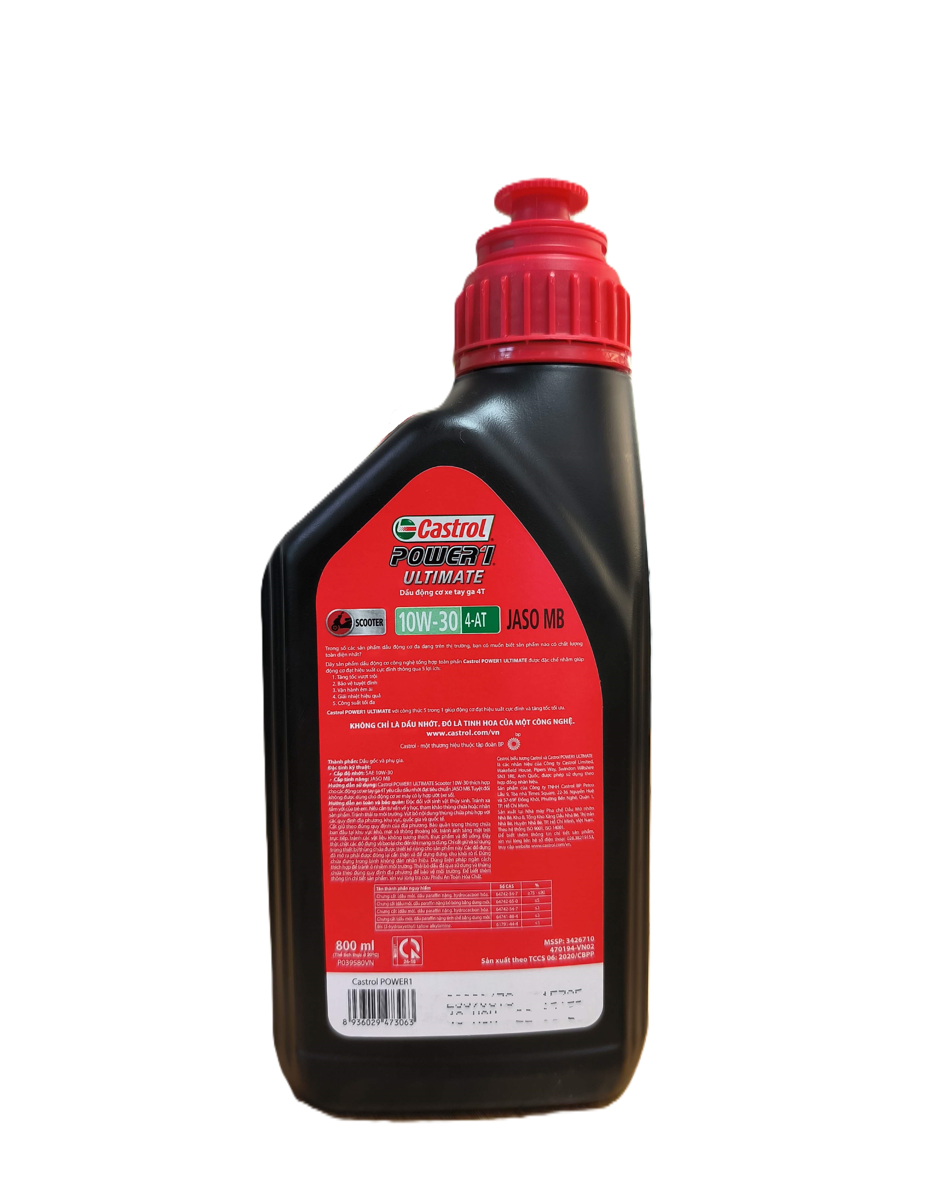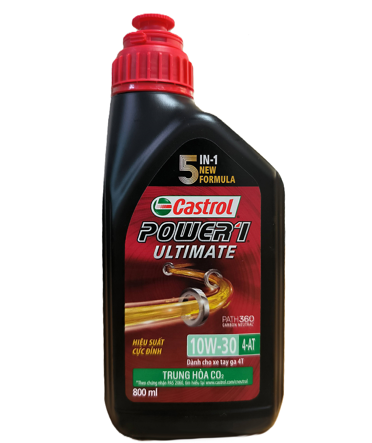 Castrol Power 1 Ultimate Scooter 10W-30 là sản phẩm dầu nhớt cao cấp của Castrol dành cho xe tay ga Castrol POWER1 ULTIMATE SCOOTER 5W-30 4T thích hợp sử dụng cho mọi động cơ xe tay ga (không sử dụng cho xe số), bao gồm các loại xe sử dụng chế hòa khí hoặc phun xăng điện tử khuyến nghị dầu nhớt đạt tiêu chuẩn JASO MB. TIÊU CHUẨN KỸ THUẬT SAE 5W-30 JASO MB DẦU GỐC Dầu công nghệ tổng hợp toàn phần LỢI ÍCH Dầu động cơ công nghệ tổng hợp toàn phần Castrol POWER1 ULTIMATE với công thức 5 trong 1 giúp: