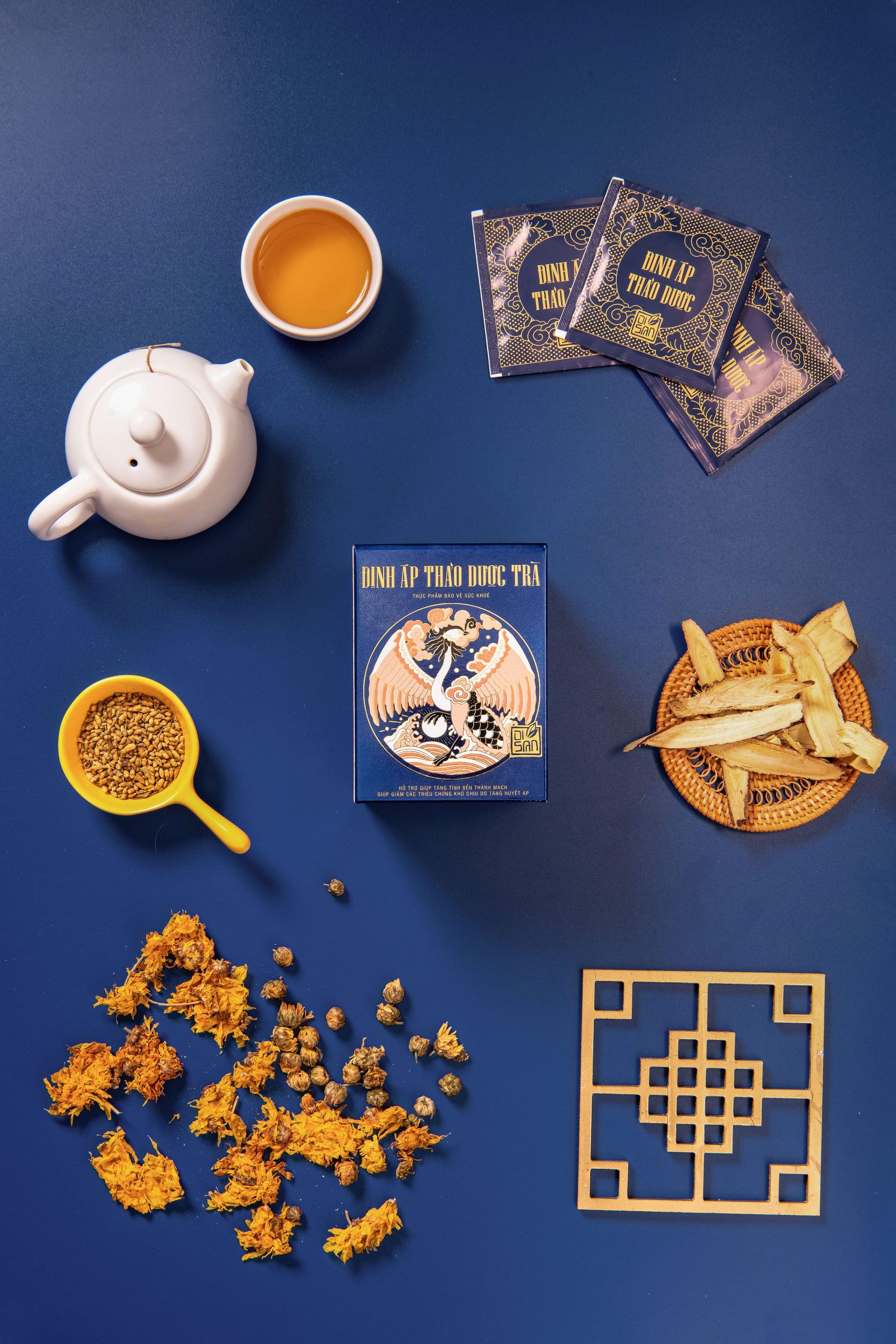 Thực phẩm bảo vệ sức khỏe ---------------------- ĐỊNH ÁP THẢO DƯỢC TRÀ Có nguồn gốc nguyên dược liệu quý giá thu hái từ tự nhiên được thu hoạch trên khắp lãnh thổ Việt Nam theo