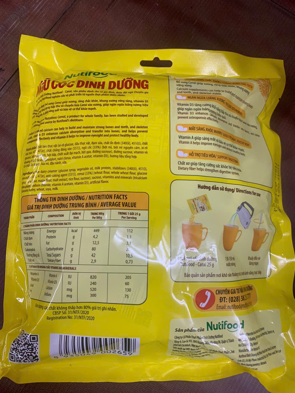 ✨Combo 2 Túi Ngũ Cốc Dinh Dưỡng Nguyên Cám Nutifood Canxi 500g – Giúp Xương Chắc Khỏe – Hàng Chính Hãnghắc Khỏe.