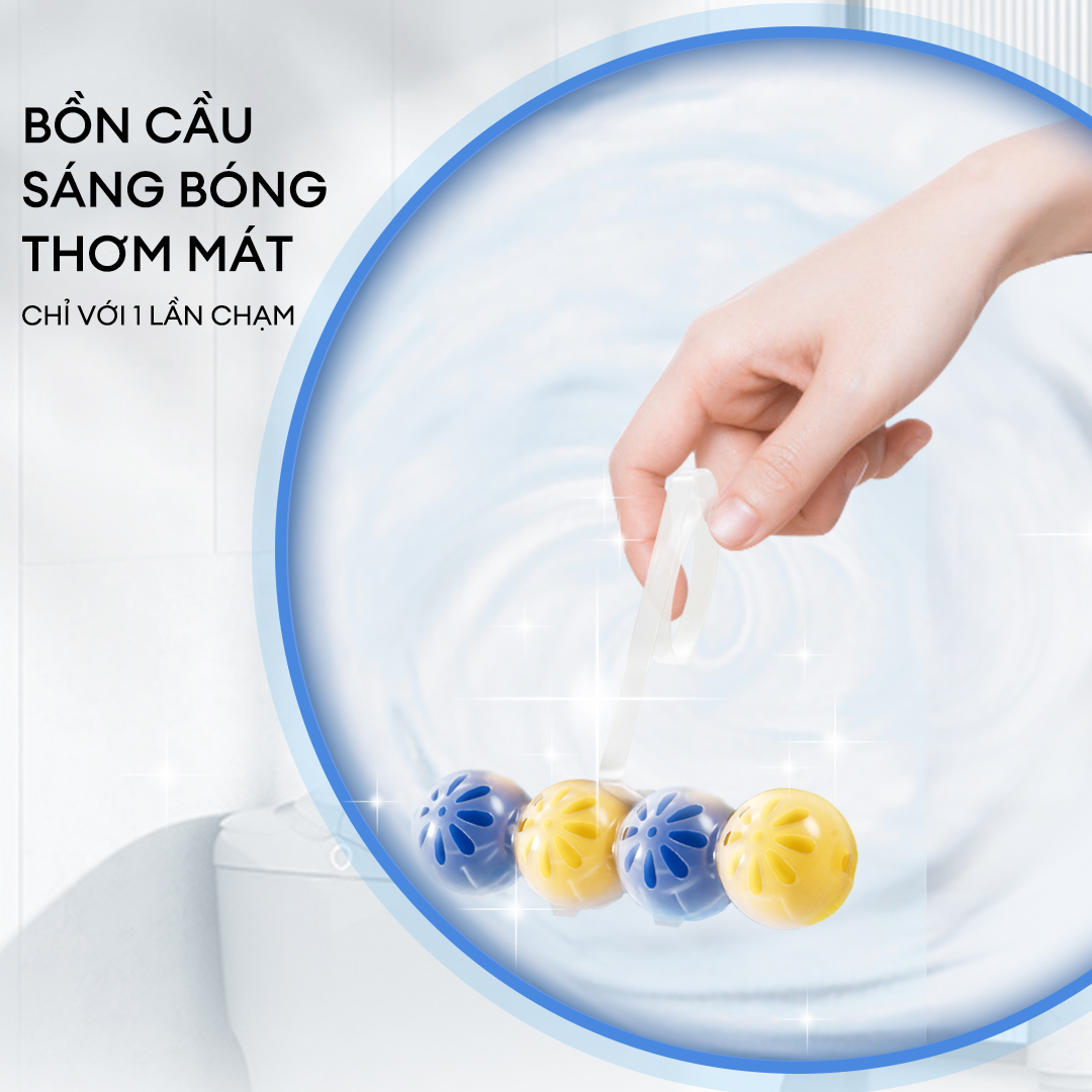 Cách dùng: Treo viên tẩy bồn cầu lên thành bồn cầu nơi nước chảy mạnh nhất